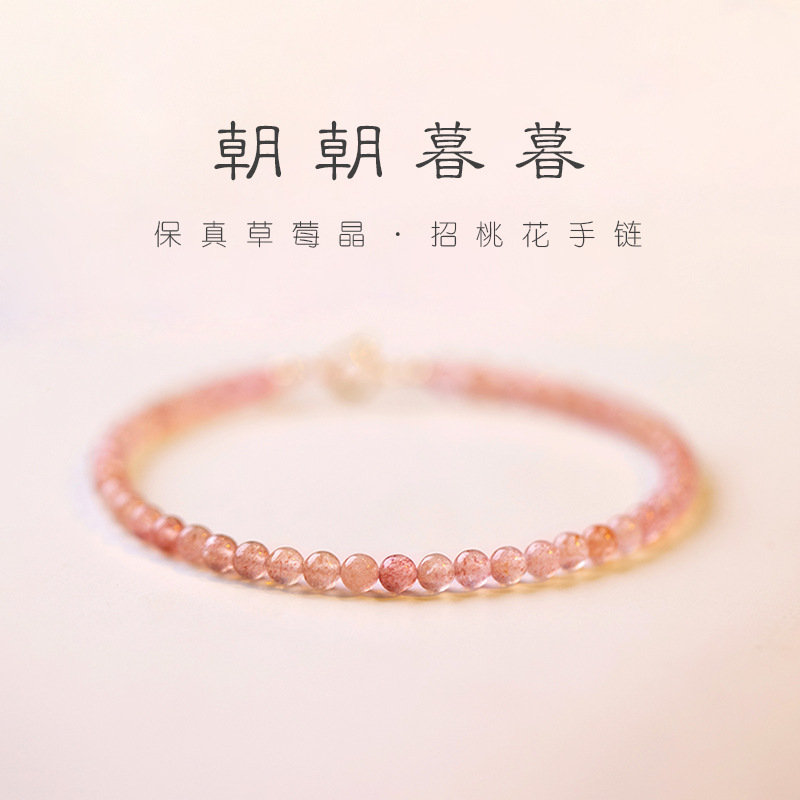 3mm ストロベリー クリスタル ブレスレット レディース ピンク クリスタル ニッチ デザイン ブレスレット ピーチ ブロッサム クリスタル ブレスレット