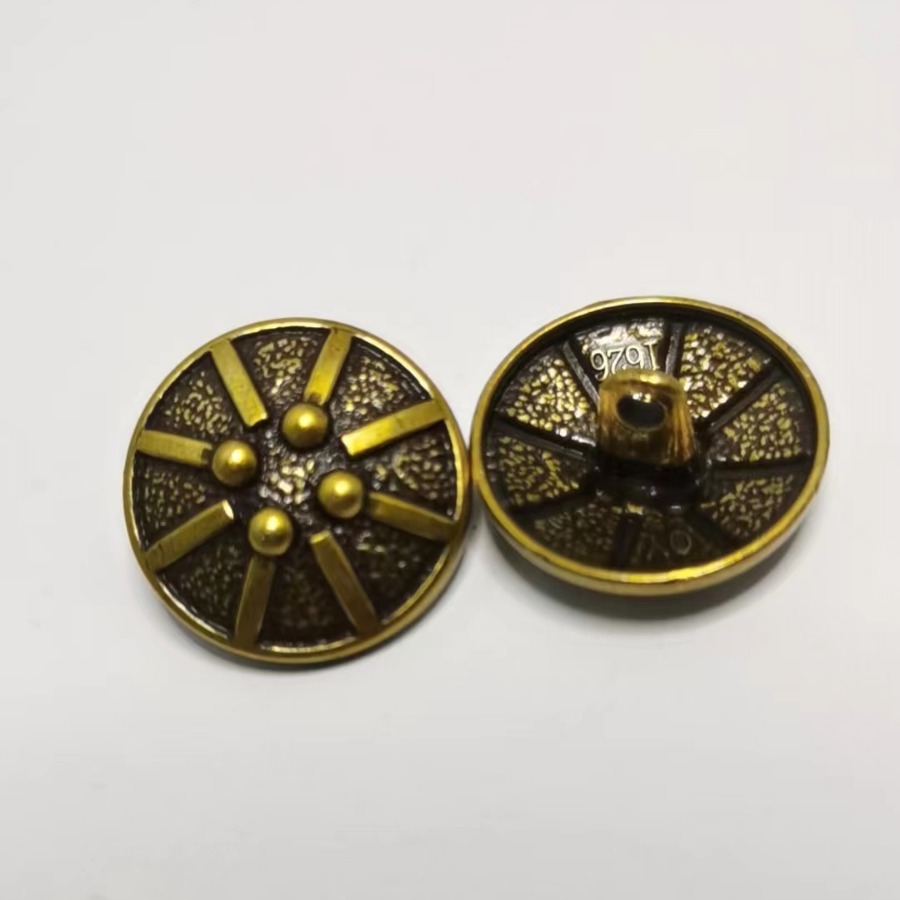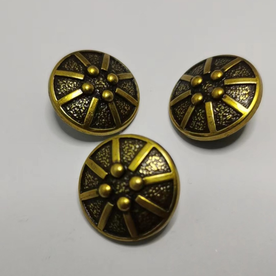 金属の手縫いボタンの古い金色の小さい香風のコートはボタンの毛を飾ります。