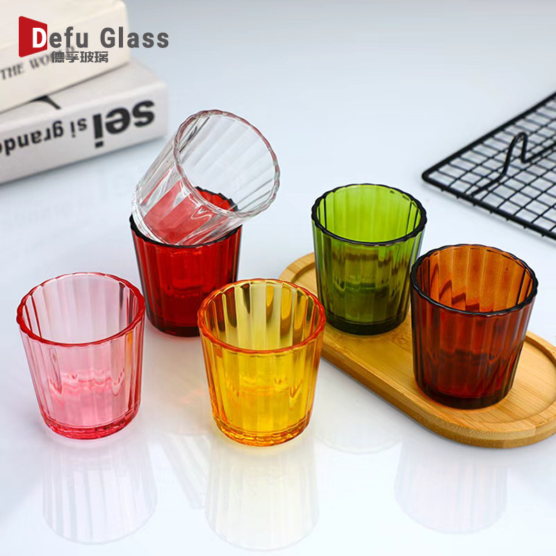 メーカー卸売りカラーガラスレリーフキャンドルカップ琥珀色縞キャンドルカップ緑模様グラススポット