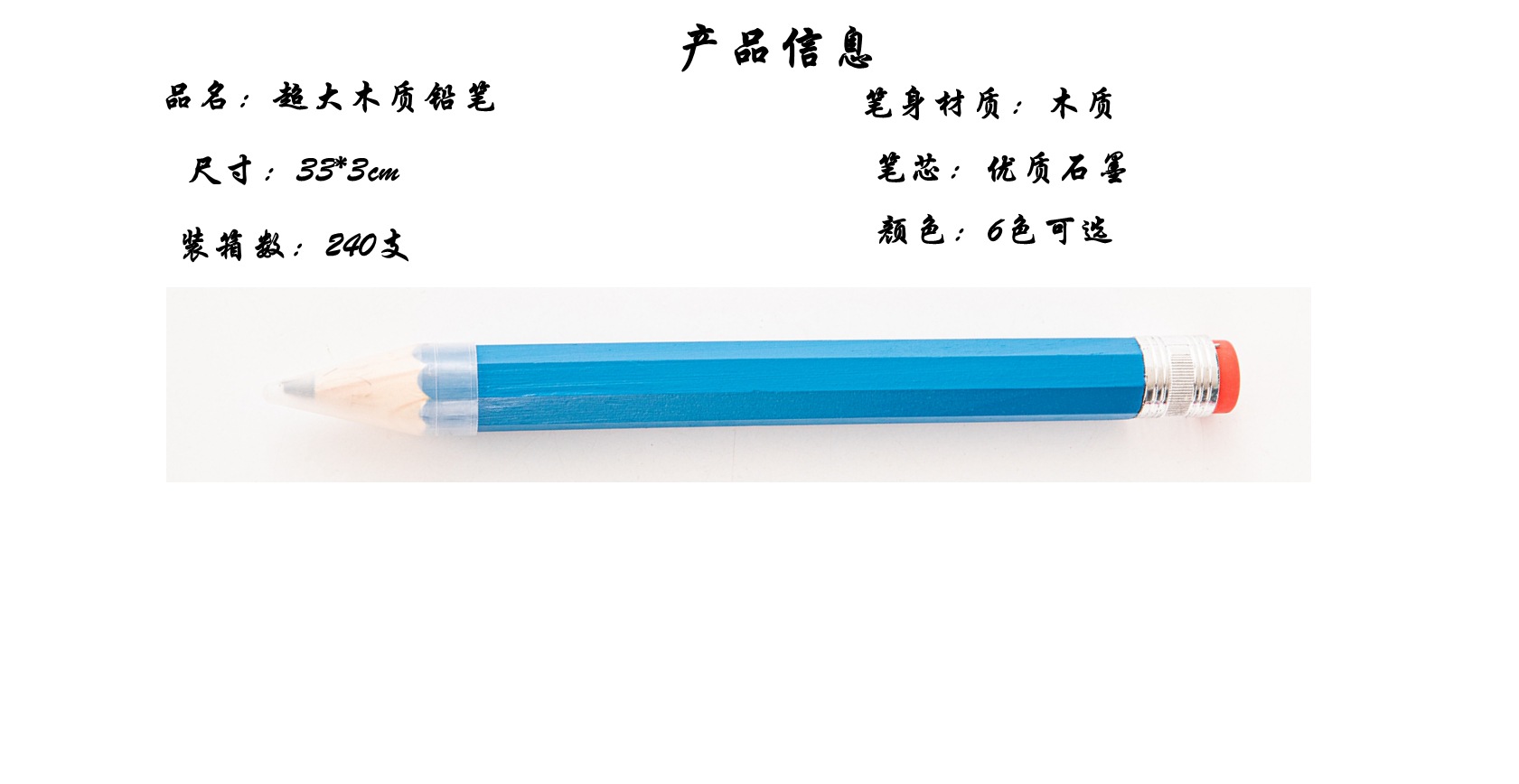 跨境木质大铅笔巨型巨大画笔无字个性创意八角铅笔办公学习礼品批