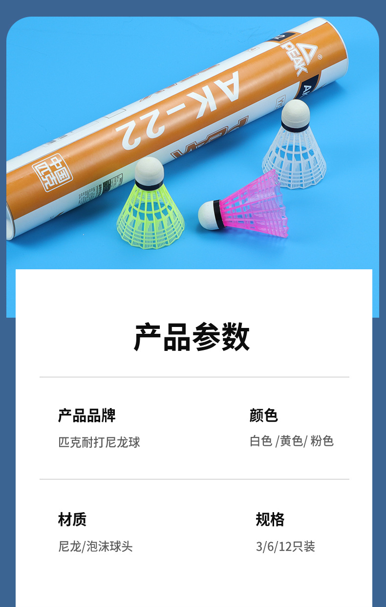 匹克正品尼龙羽毛球耐用耐打塑料儿童玩具室外成人专业比赛训练球