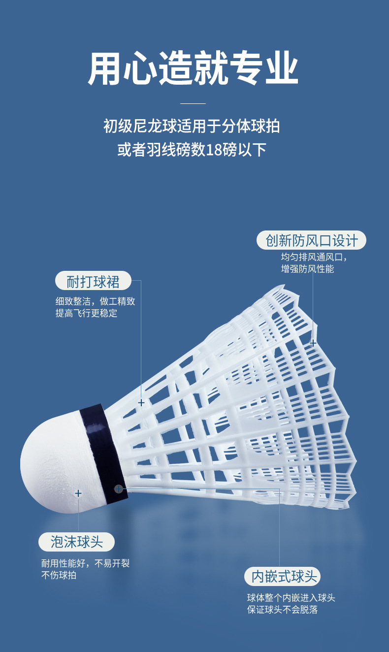 ナイロン耐バドミントン6個入り12個入りナイロンボールプラスチックボール学生室内外トレーニングバドミントン
