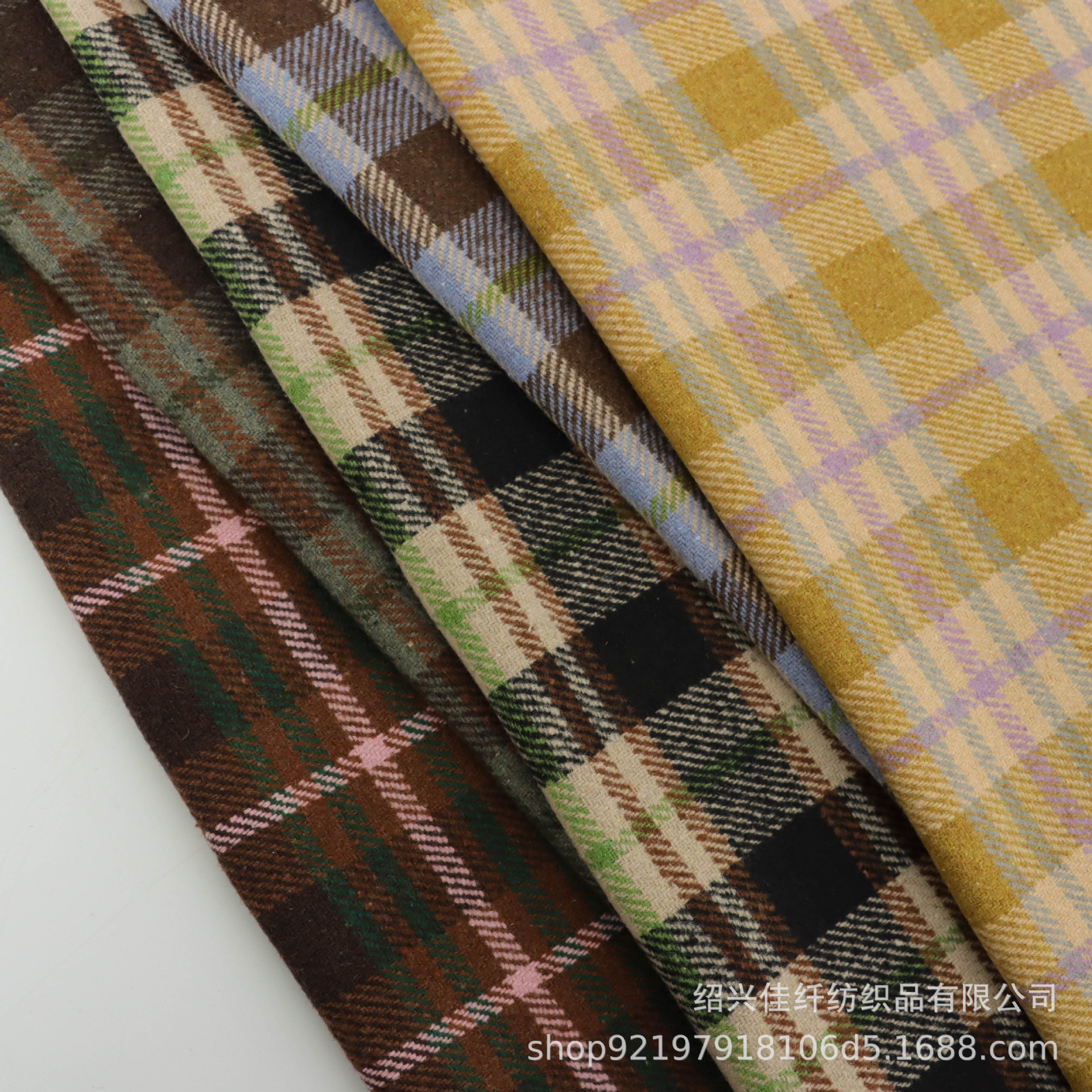 粗紡磨毛色織彩点魚骨紋生地秋冬金靴帽コート人字布現物卸売り