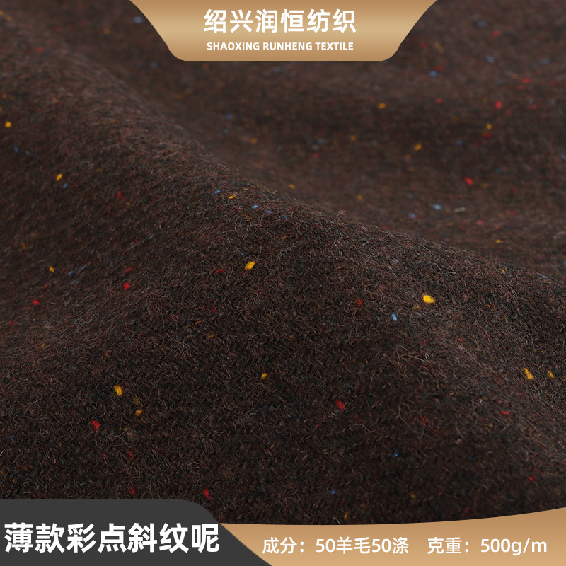 柯桥羊毛港花呢布料 彩点港花呢毛呢外套 单面肌理感彩点呢布料