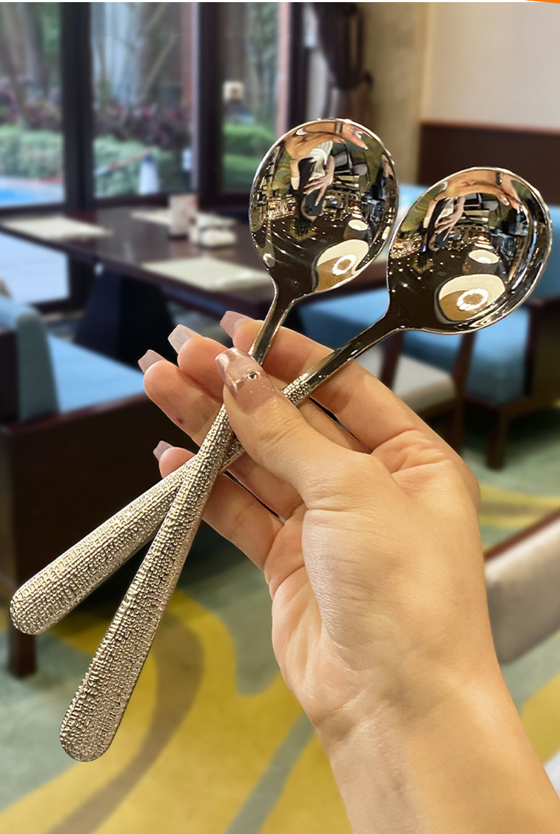 304ステンレススプーン高颜値ハンマー創意ins軽豪華長柄スプーン家庭用スープスプーン食事スプーン