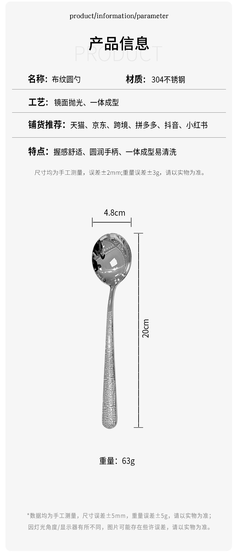 掲陽卸売り304ステンレススプーン家庭用ins風長柄スプーンホテルレストラン布紋丸スプーン