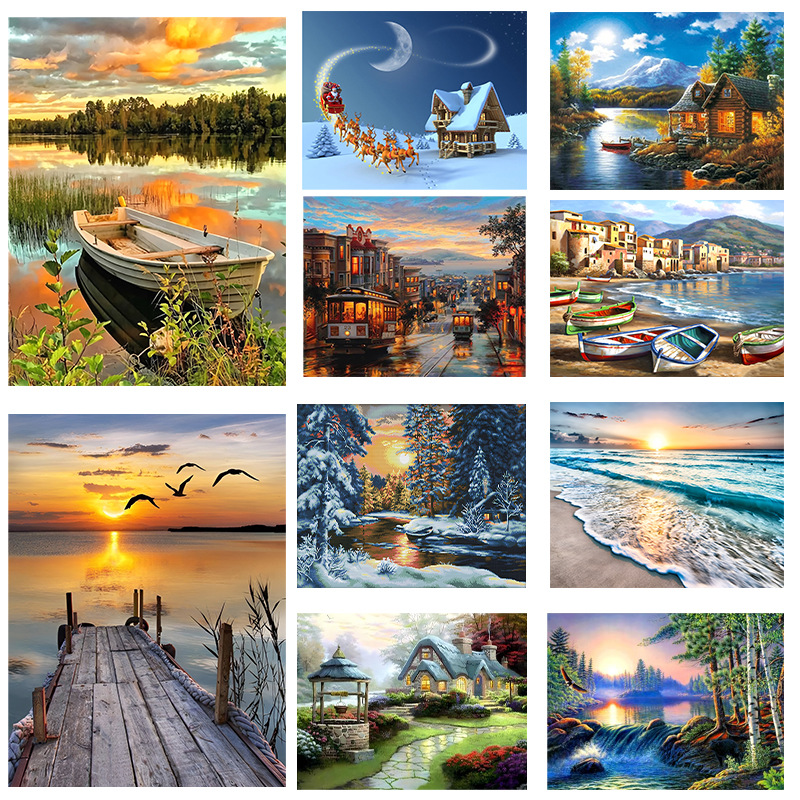 アマゾンクロスボーダー熱金新商品十字刺繍diy海辺風景セット源メーカーは対外貿易卸売りに専念している