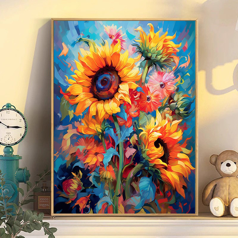 アマゾンクロスボーダー十字刺繍セット人気タイプひまわり油絵大人手刺繍diy壁装飾画