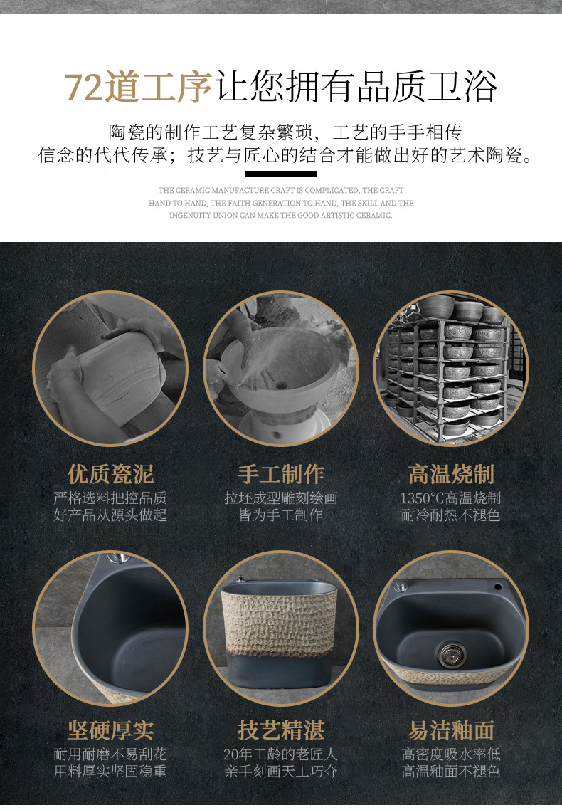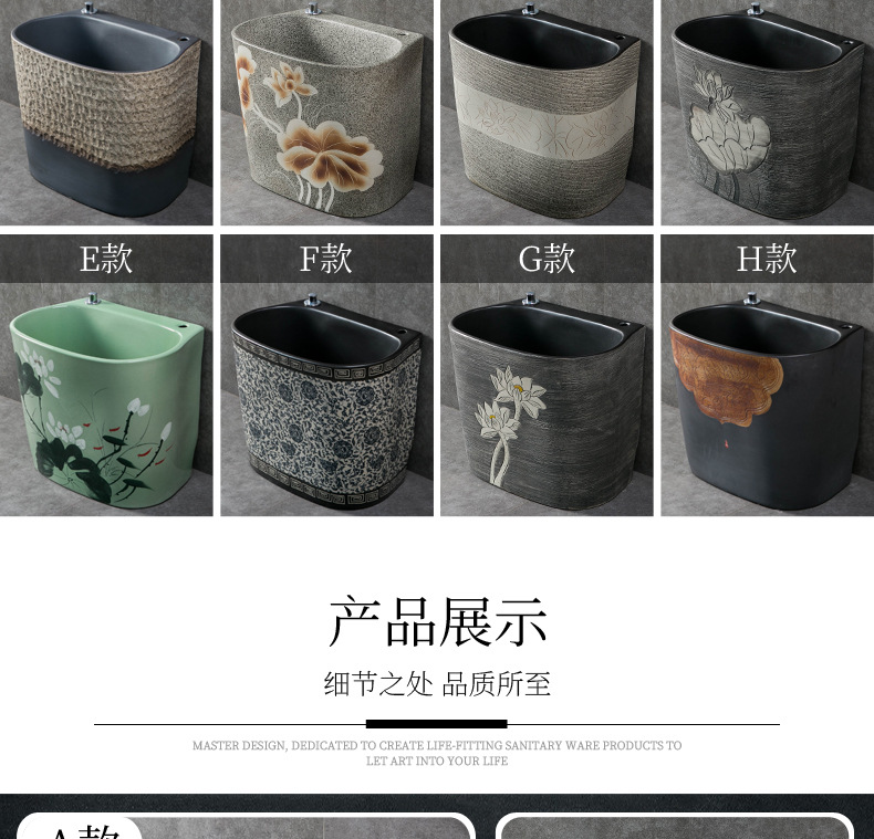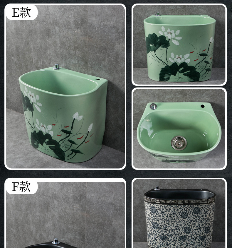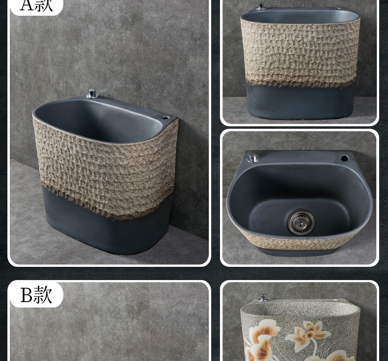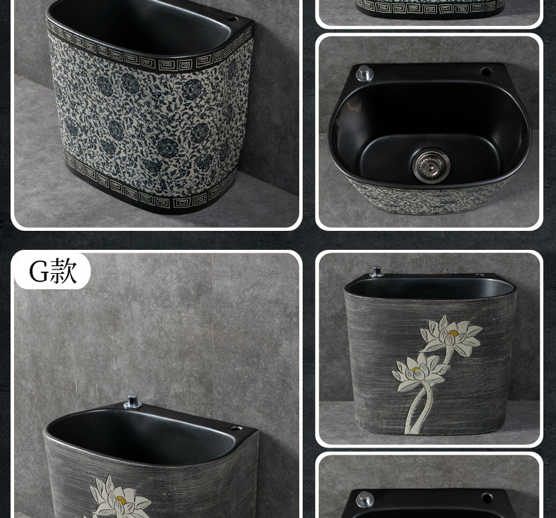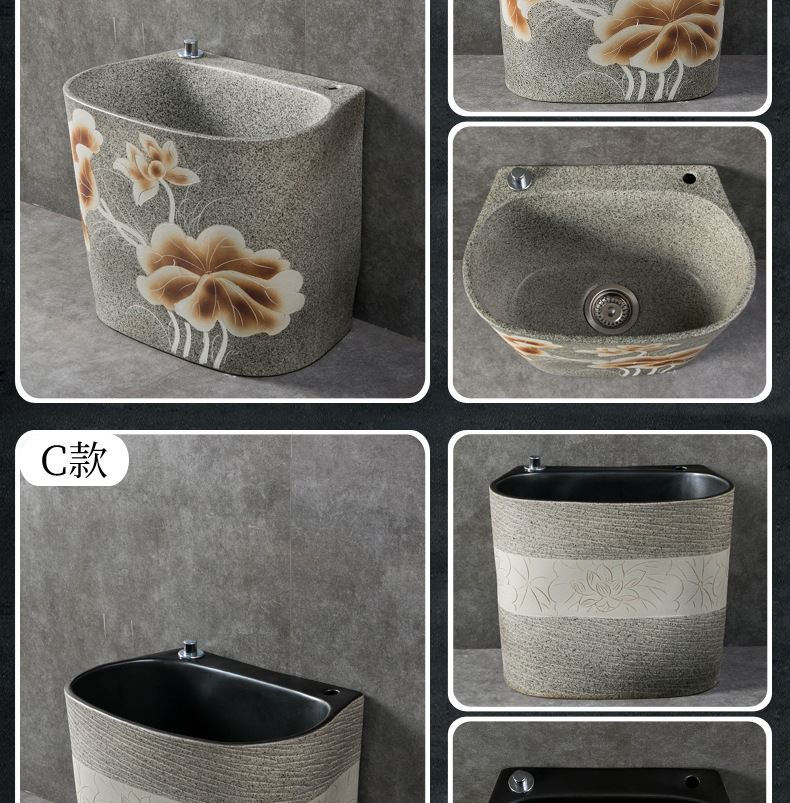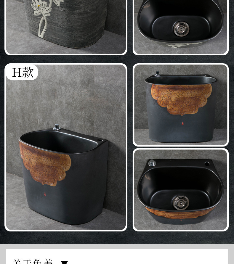 摩登灰阳台拖把池家用卫生间彩色陶瓷拖布池落地式户外庭院洗水槽