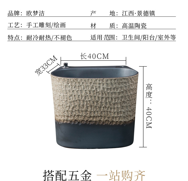 户外拖把池一体加高阳台墩布池家用卫生间庭院长方形陶瓷水槽地盆