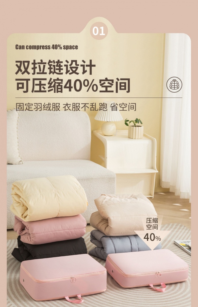 ダウンジャケット収納袋】携帯服ダウンジャケット旅行収納袋スーツケース家庭用衣類整理バッグ