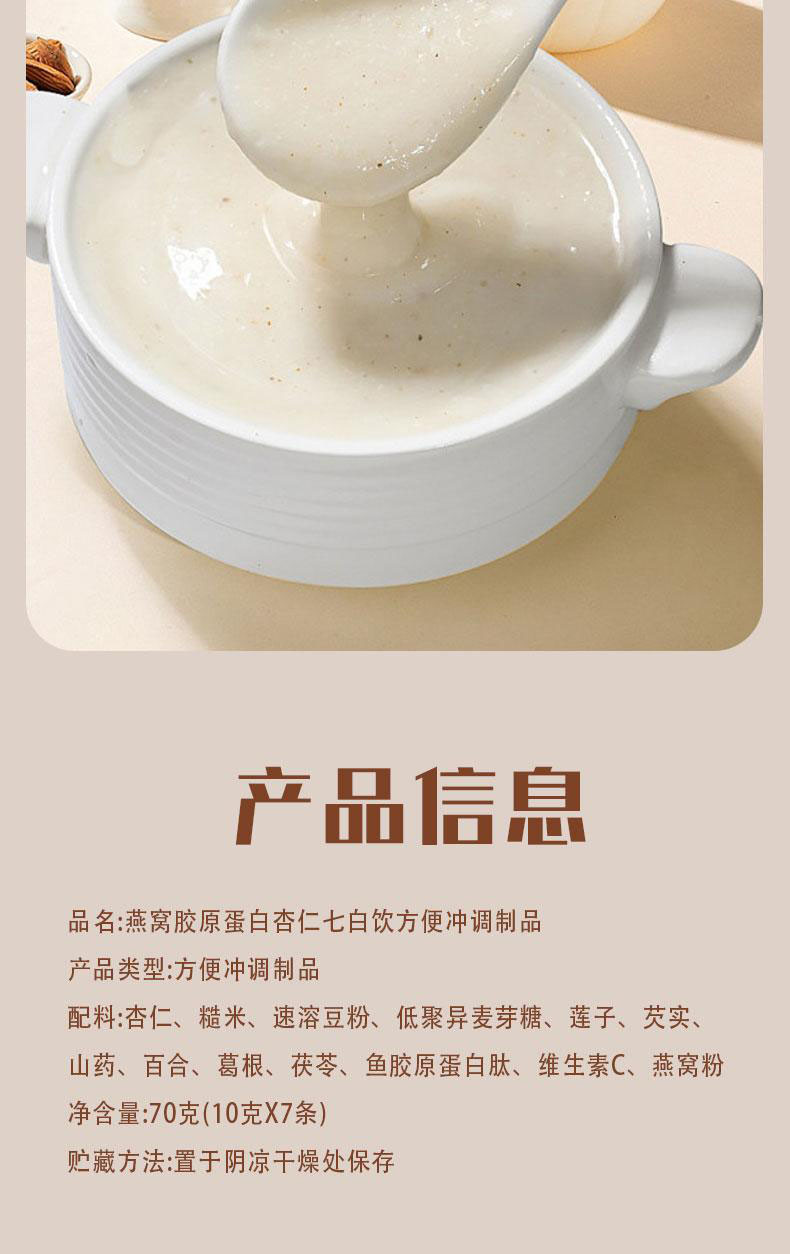 山岁堂家医儿杏仁七白饮燕窝胶原蛋白即食代餐冲饮厂家批发代发