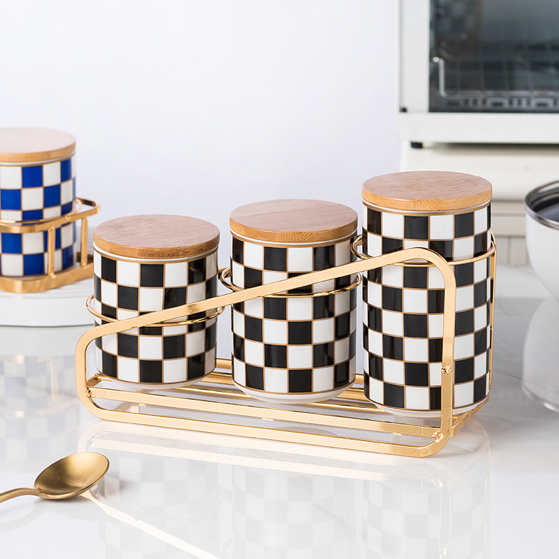 棋盤格密封缶五穀雑穀厨房収納食品級陶磁器缶箱間食乾燥品茶葉貯蔵缶