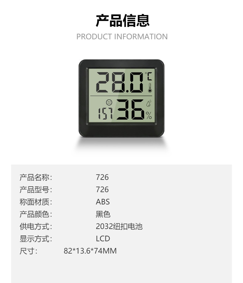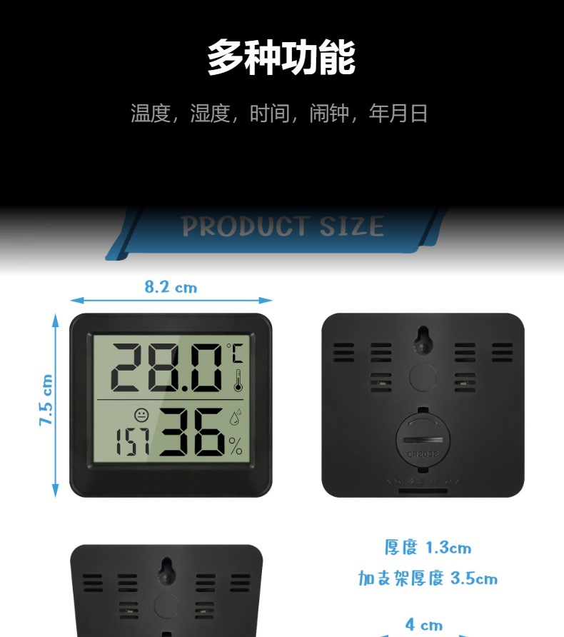 2022年新型ファッション方形温湿度両用壁面ストラップ温湿度検査家庭用デスクトップ配置