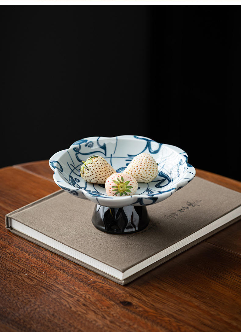 青花磁器高足茶点皿家庭用デザート創意陶磁器果物皿茶室乾燥ナッツ小食皿供仏トレー