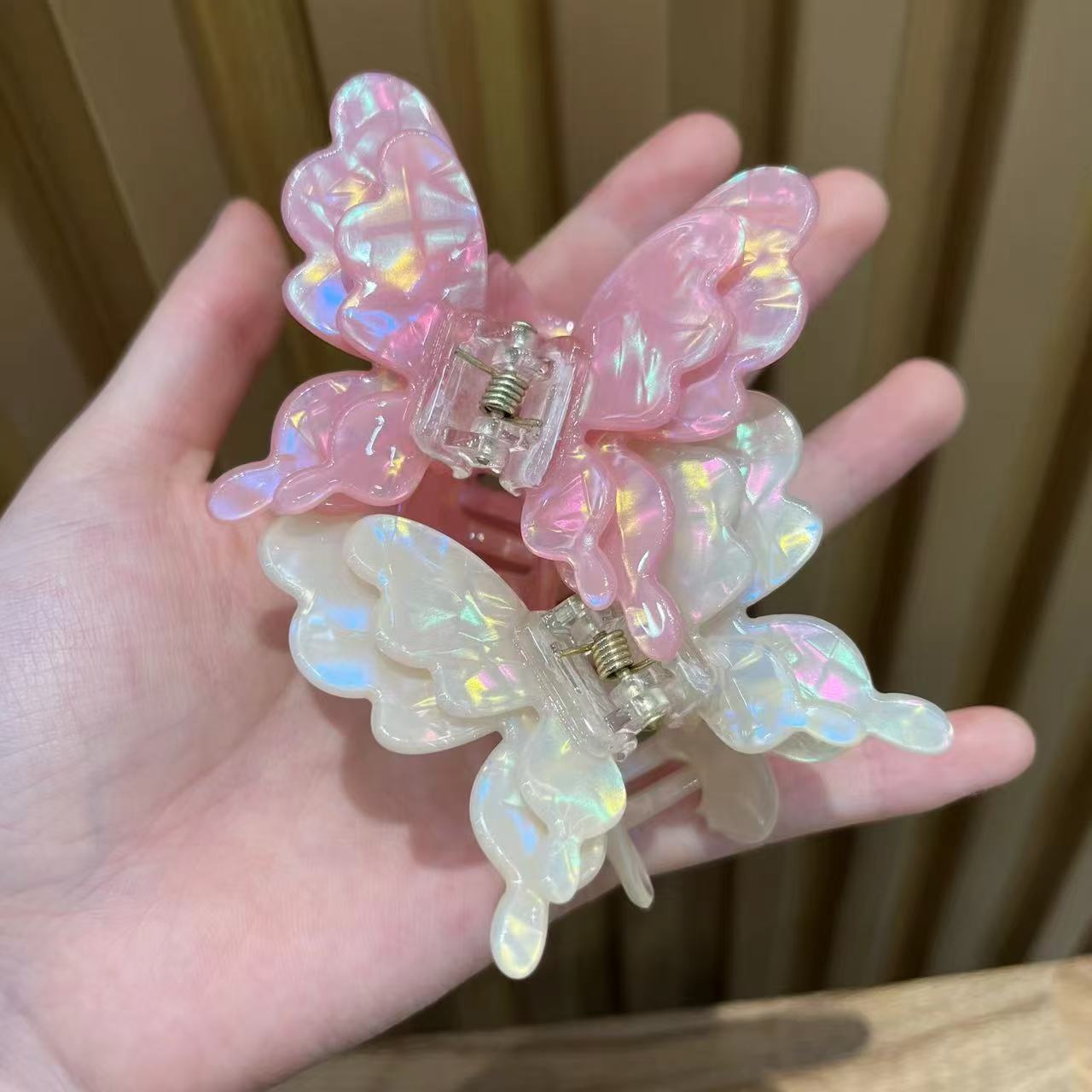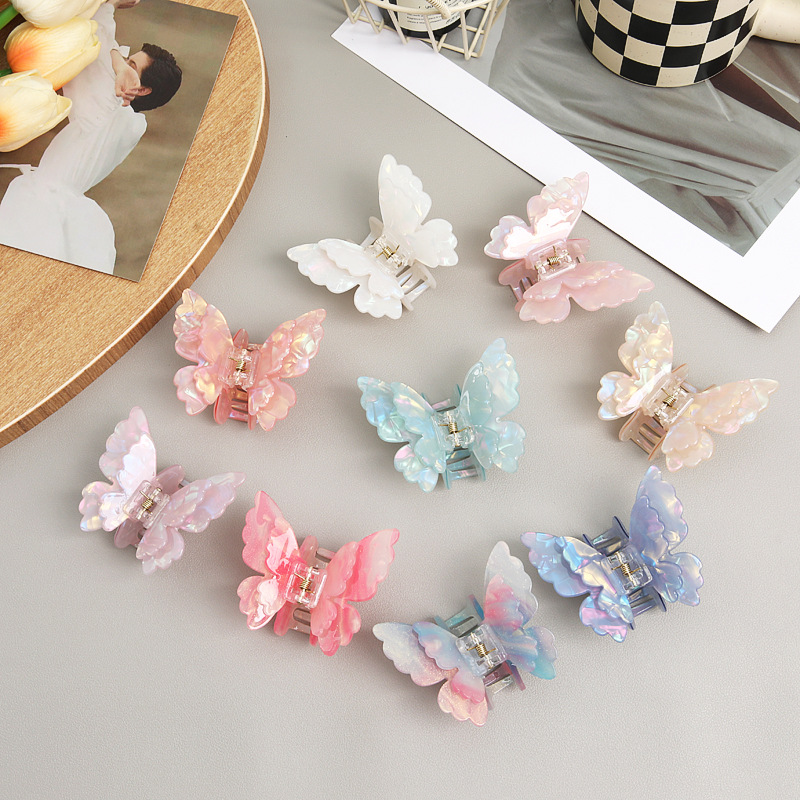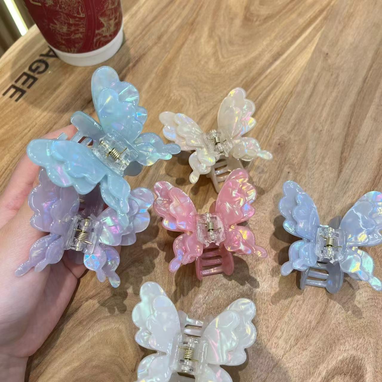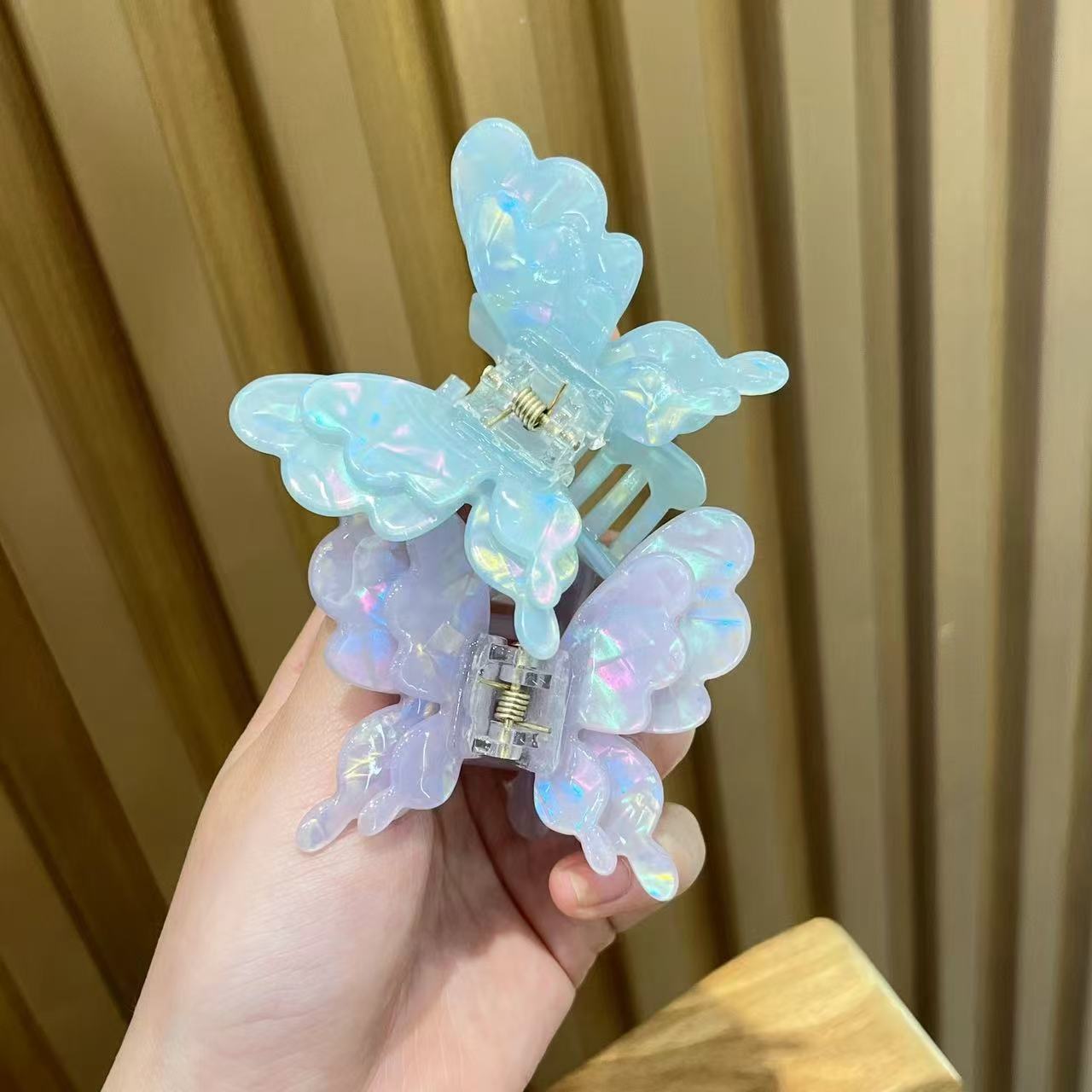 スウィートシェイク! カラフルな二重蝶サメのヘアピン! 高級な質感の後頭部の髪のクリップの女性