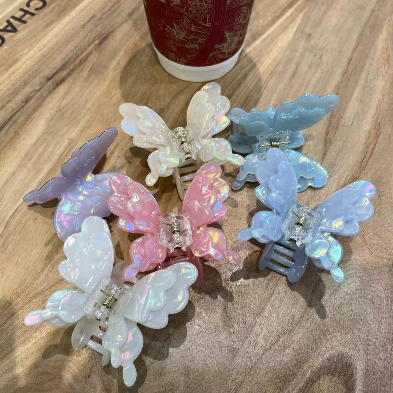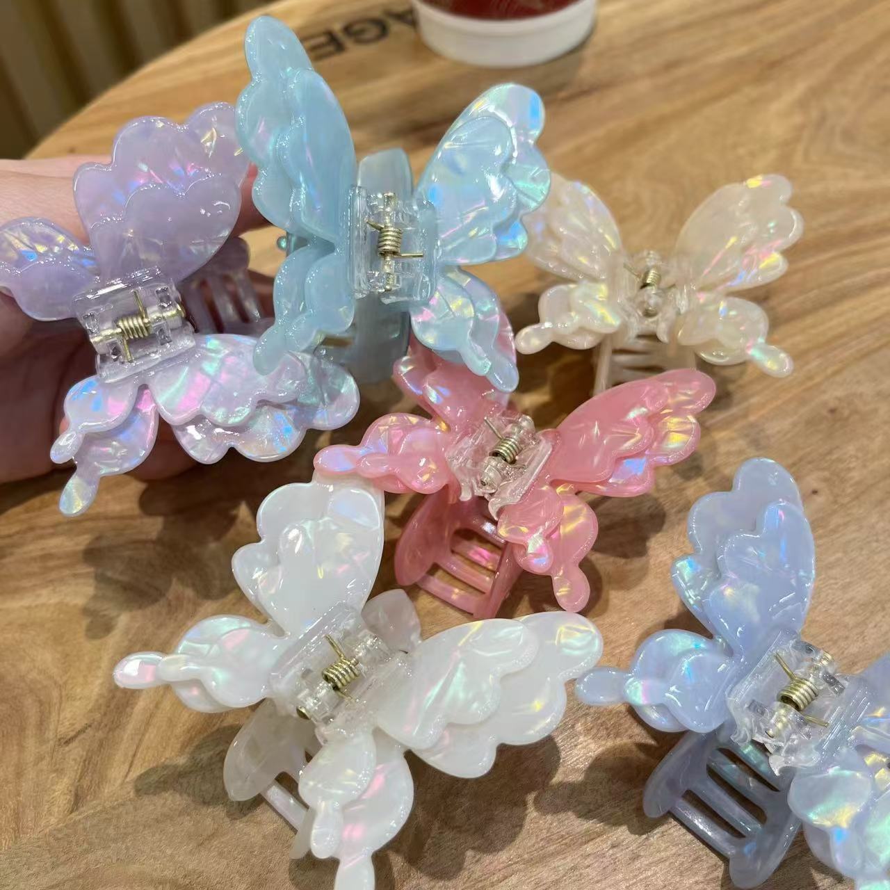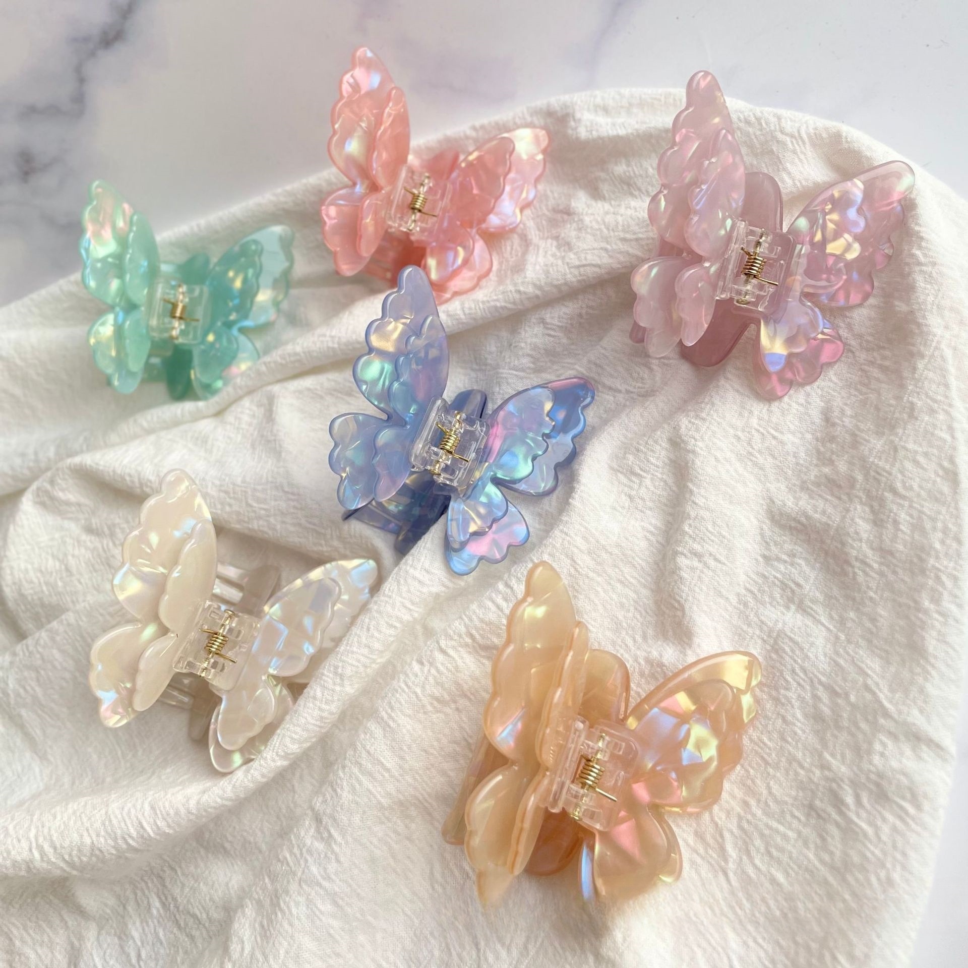 スウィートシェイク! カラフルな二重蝶サメのヘアピン! 高級な質感の後頭部の髪のクリップの女性