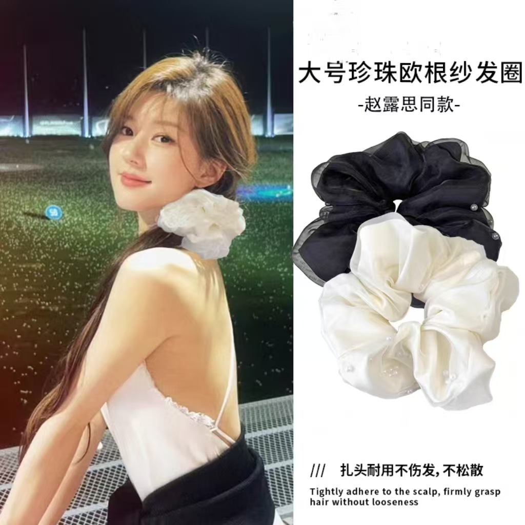 高级感网纱缎面大肠发圈女2025新款简约气质扎头发皮筋发绳发饰