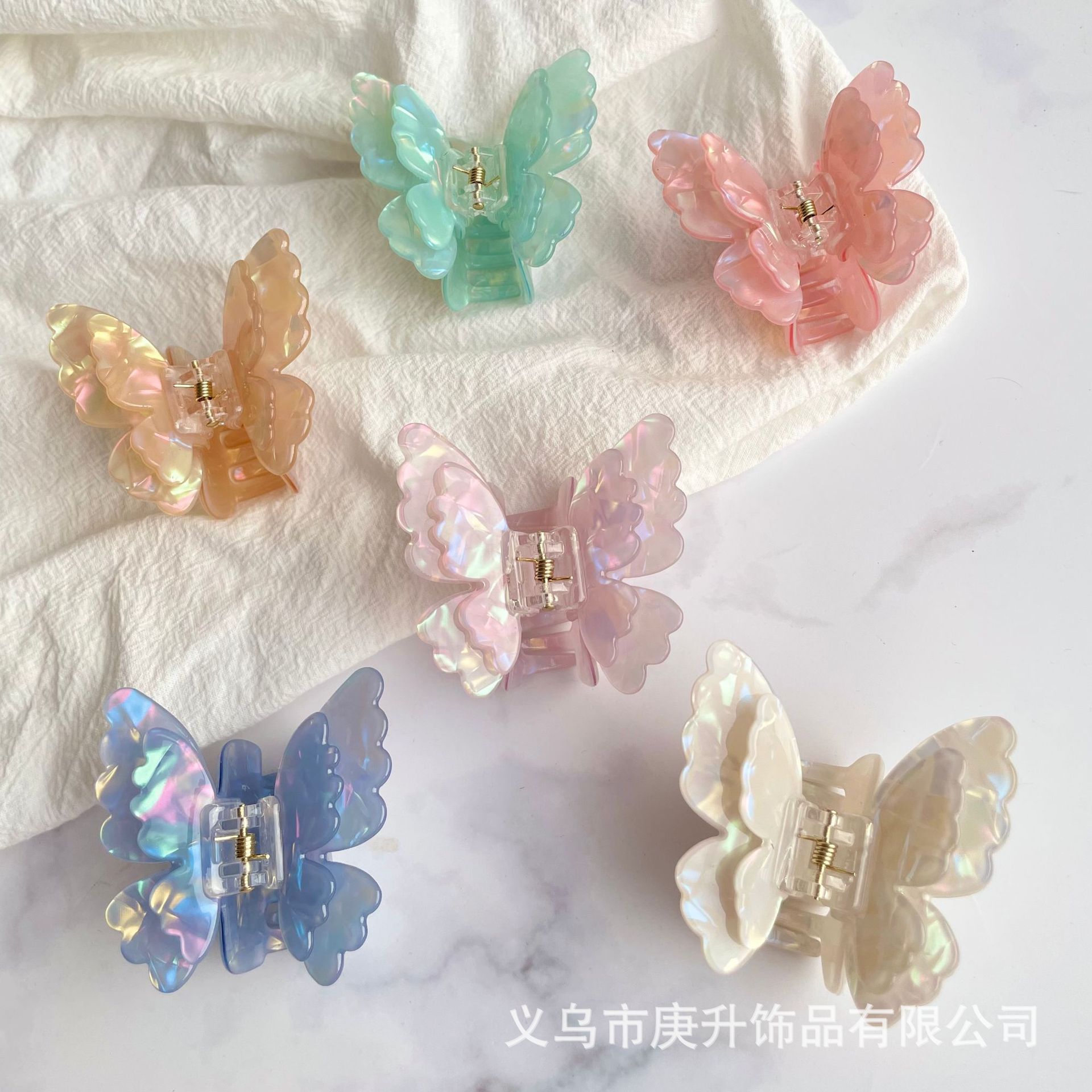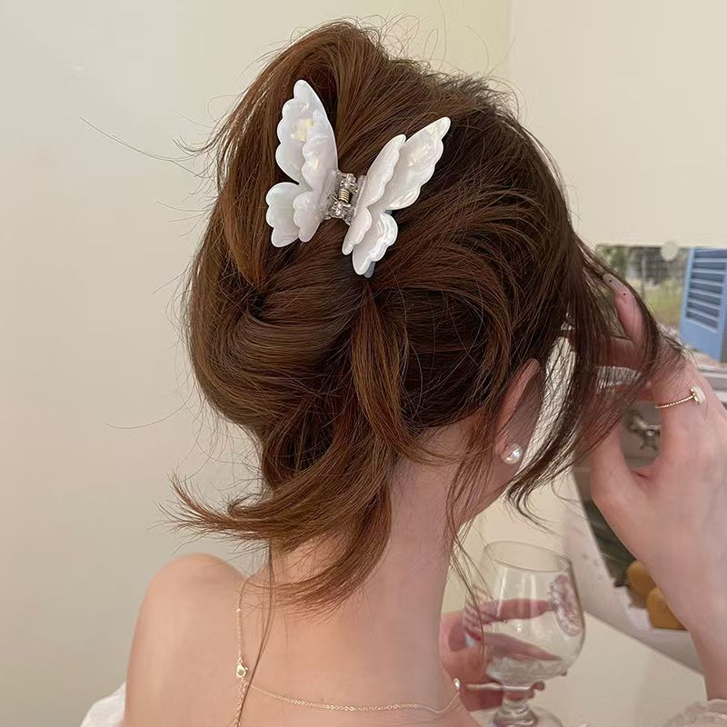 新中国式二重蝶ヘアピン夏精致高級感髪飾り女性酢酸半髪小クリップサメクリップ