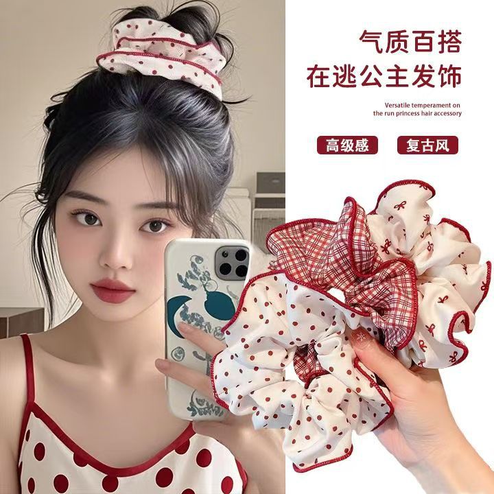 波点复古发饰大肠发圈头绳高级感女2025新款高弹力发绳公主头饰