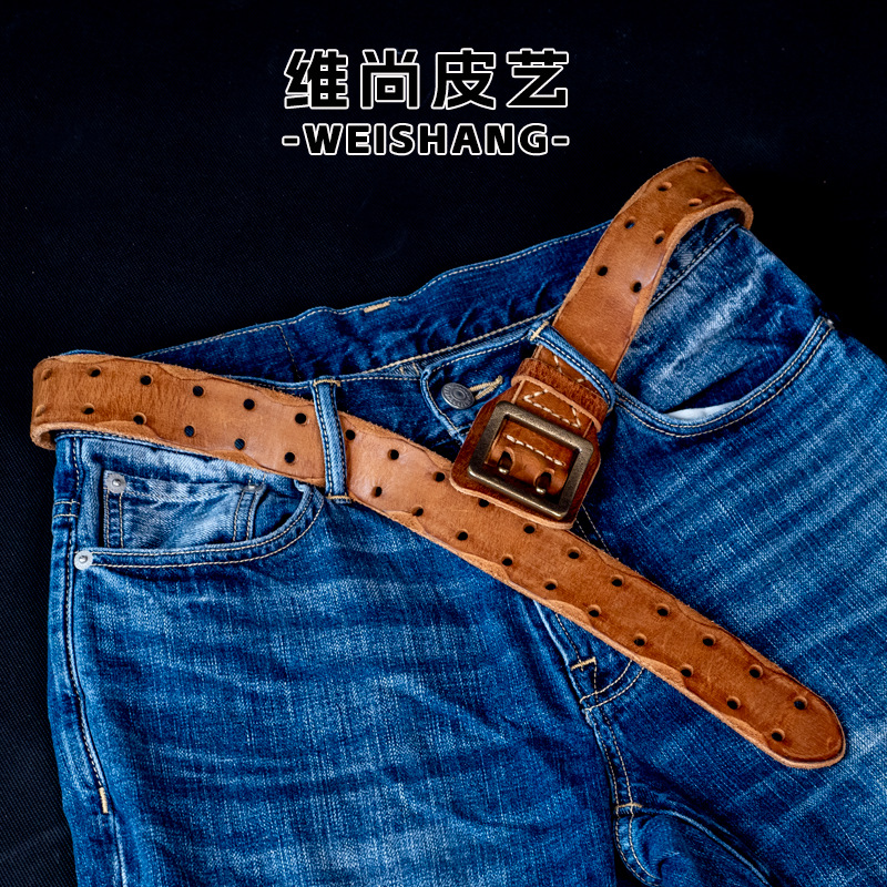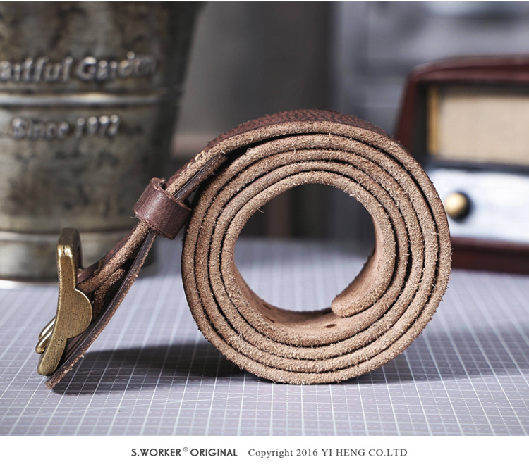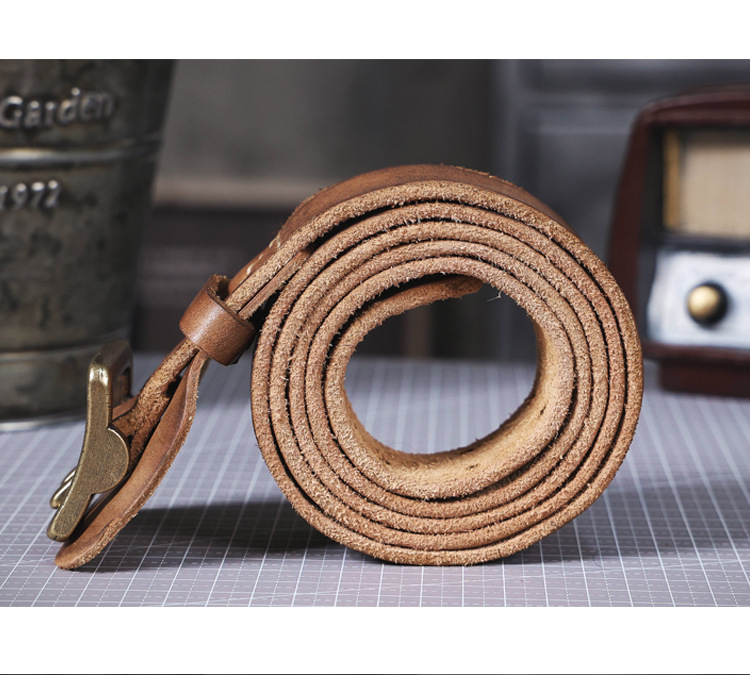 レトロカジュアルトップ牛革男性ベルト純銅ベルトクリップ手作り本革ベルトシンプル