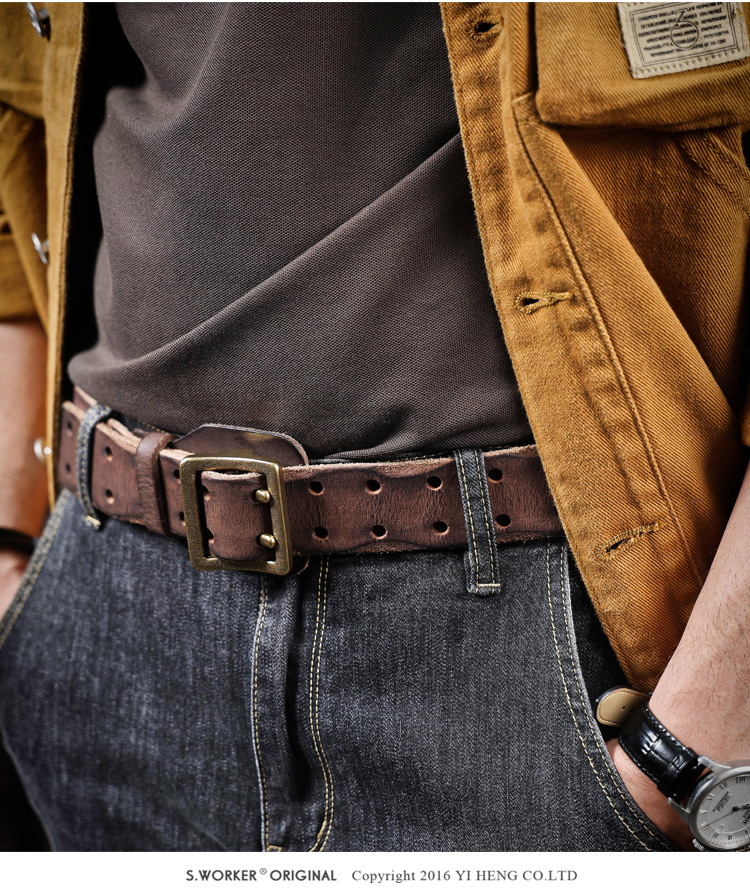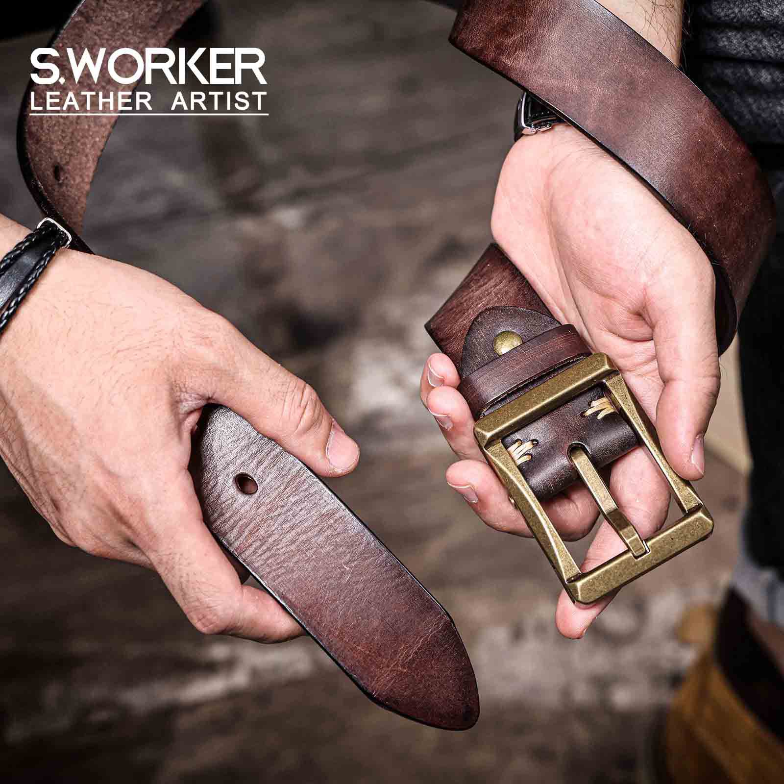 レトロなトップ層牛革男性ベルト銅ベルトピンバックル個性的な手作りイタリア真皮厚手ベルト