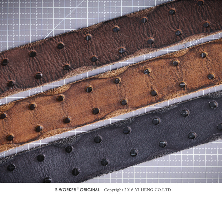 男性の頭層のレトロなベルトの個性の本革はなめし革のベルトを植えてアレルギーを防止します。