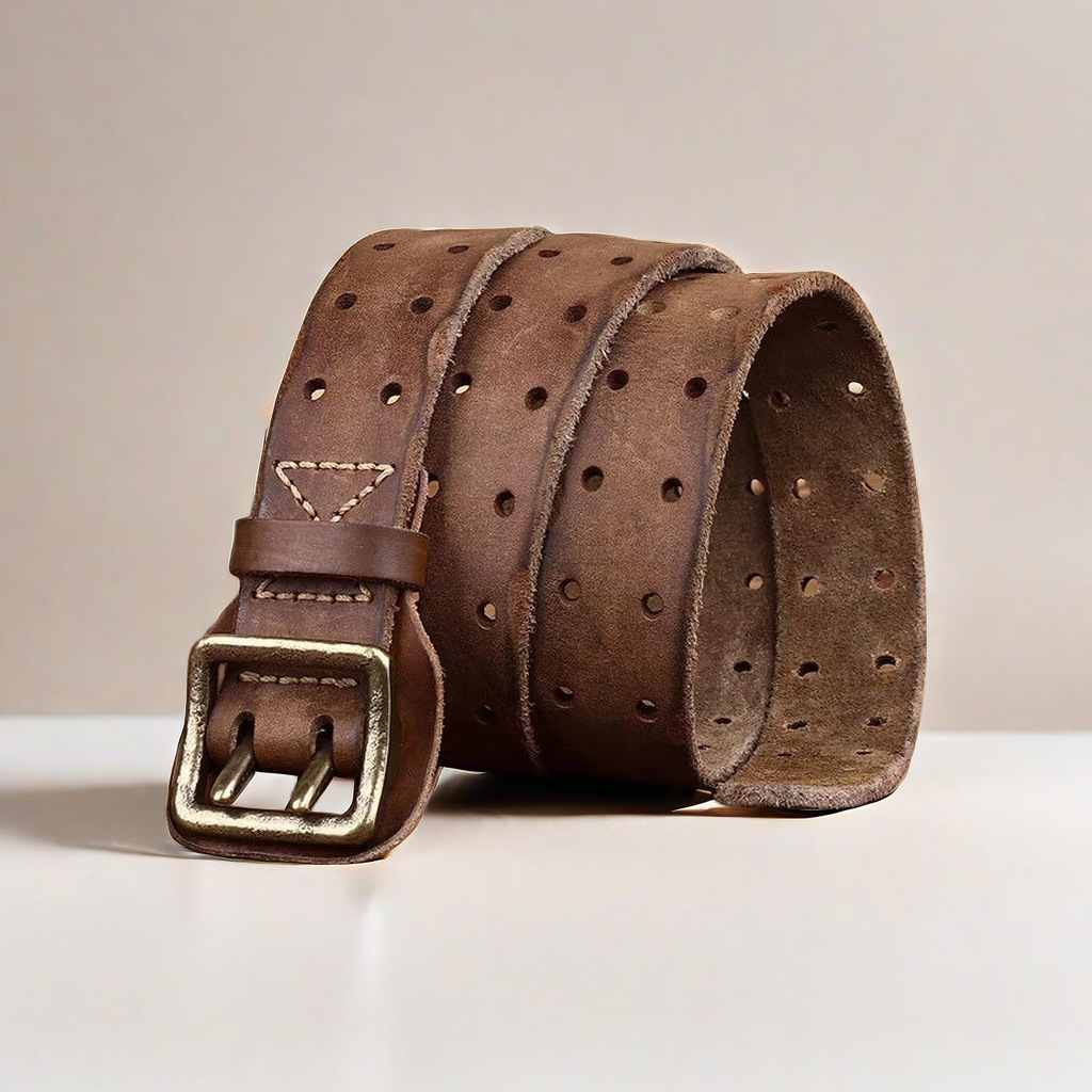 メンズベルト 高級感あふれる万能な一層牛革製 ヴィンテージステッチデザイン ワークウェアやカジュアルスタイルに合うレトロベルト