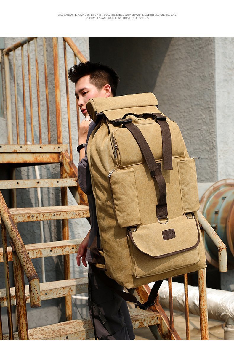 超大容量100リットル厚手キャンバスリュックサック男性リュックサックレトロファッション旅行カバン旅行登山カバン