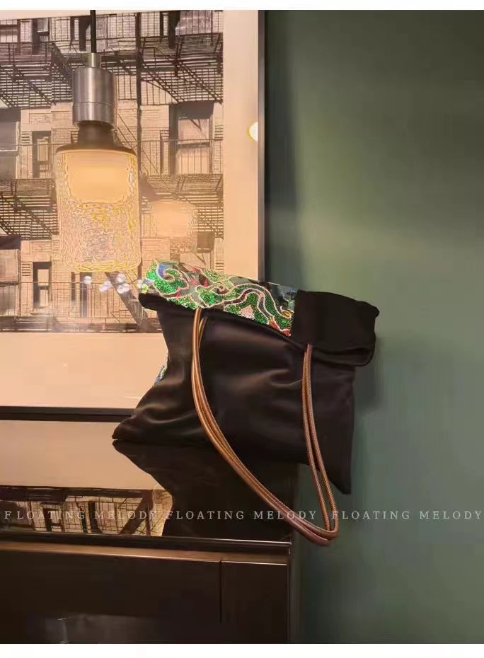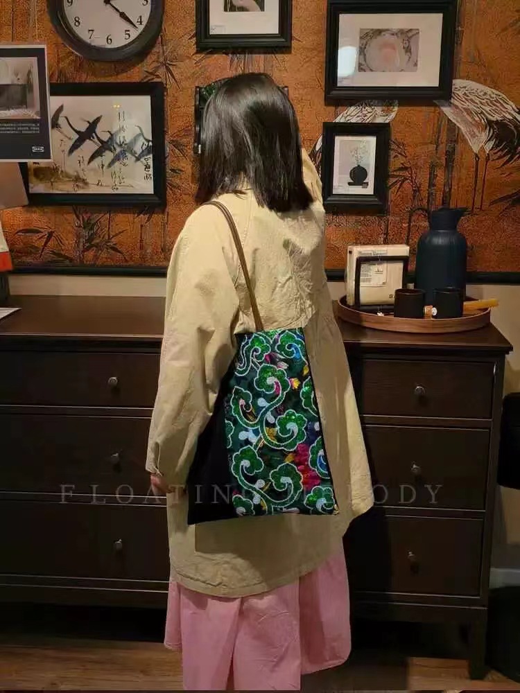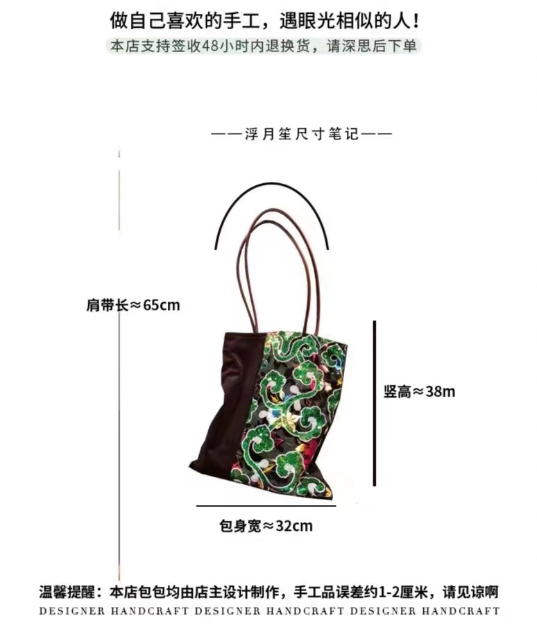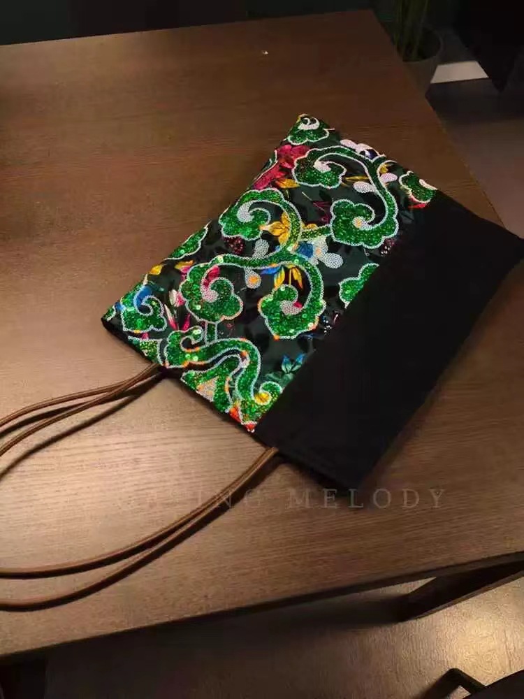 古着感ヴィンテージグリーン祥雲スパンコールベルベットステッチシングルショルダーバッグ特包浮月笙オリジナル新商品