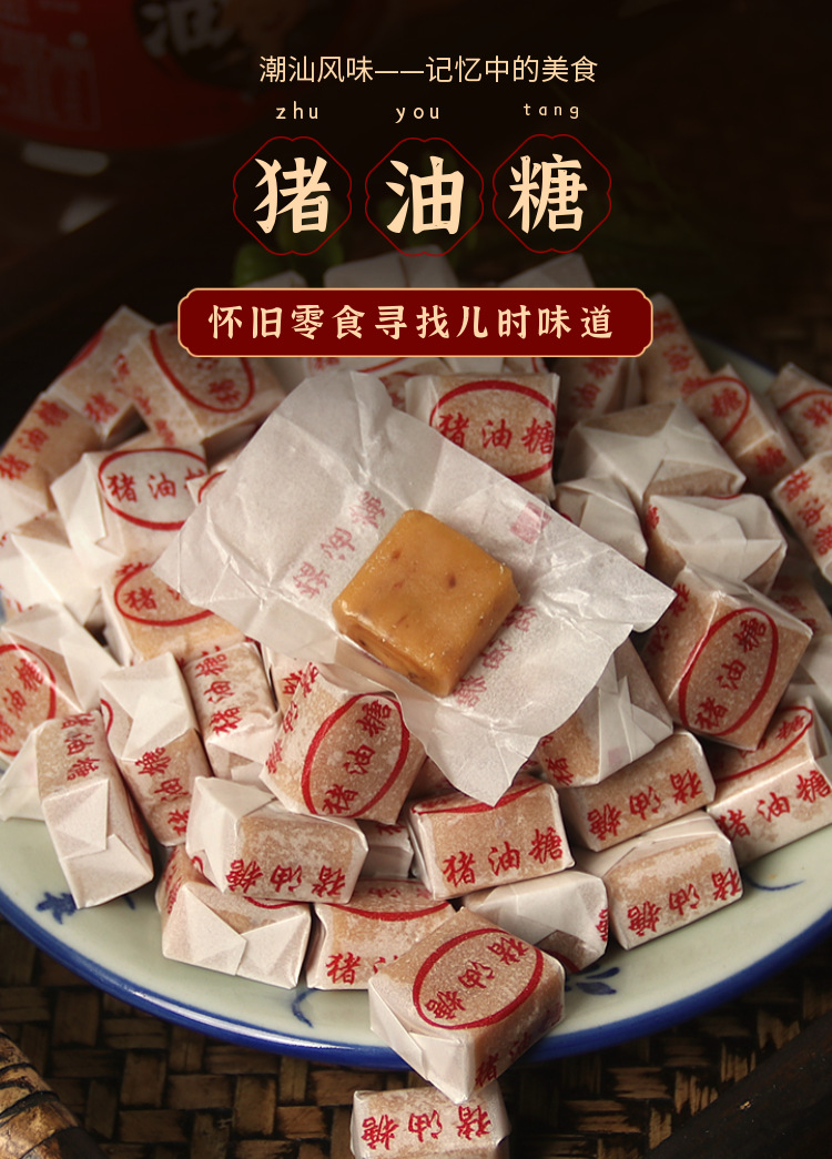 豚油糖本場の老舗広東潮汕海豊特産品8090後の子供の頃の古典的なレトロな間食品ソフトキャンディー