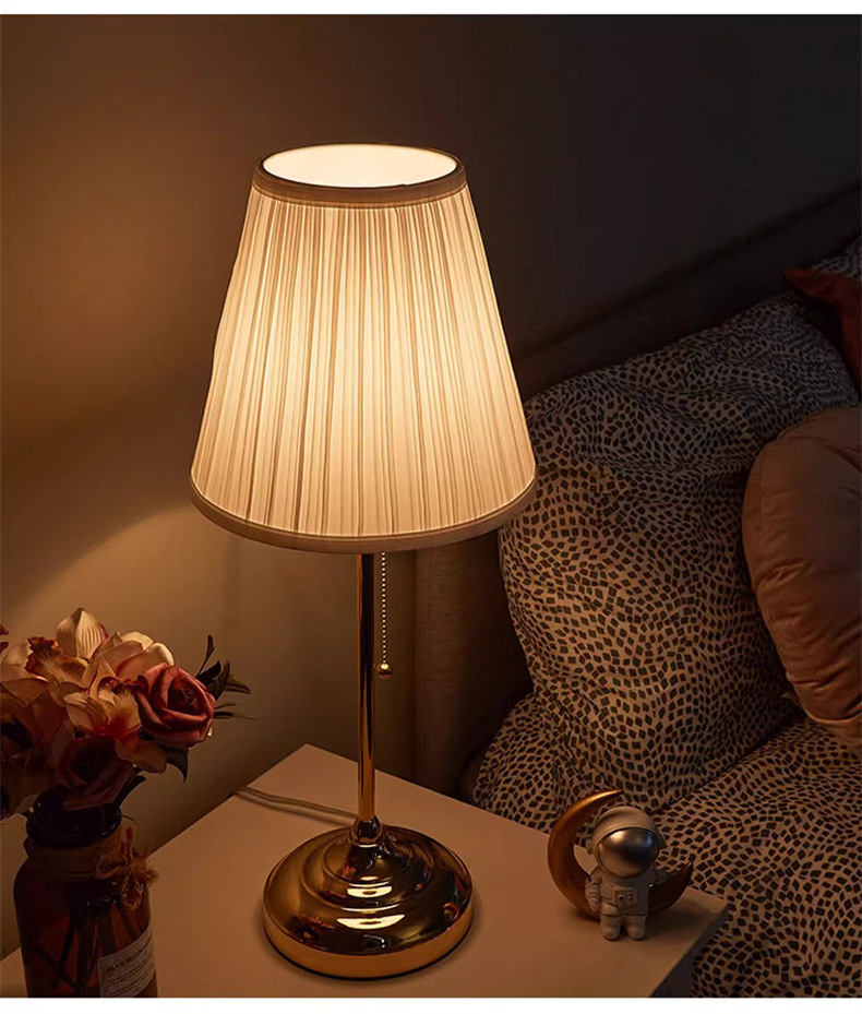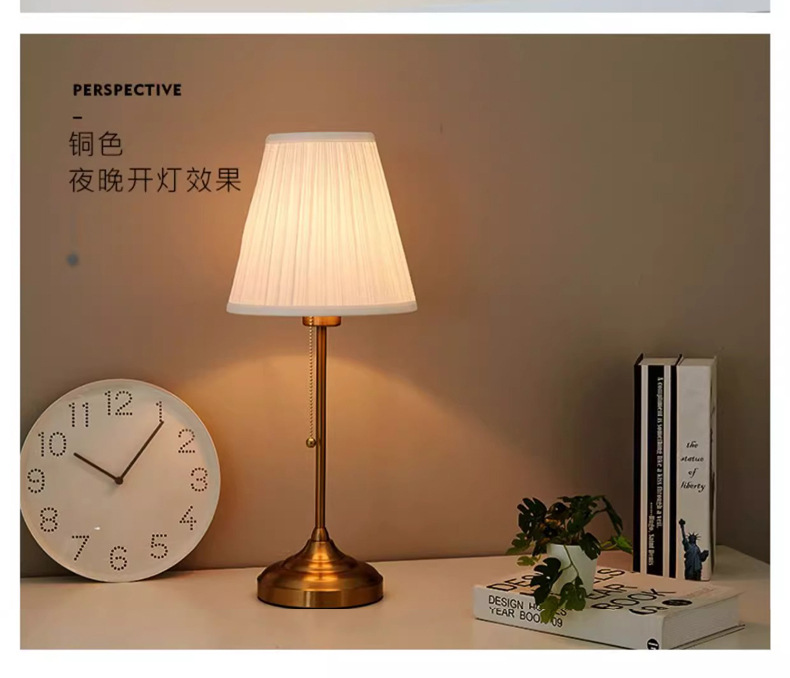 跨境亚马逊床头台灯美式欧式客厅卧室护眼小夜灯复古拉绳装饰台灯