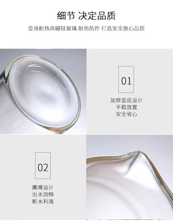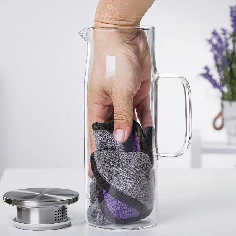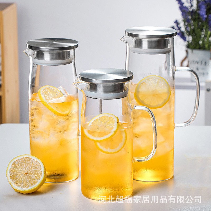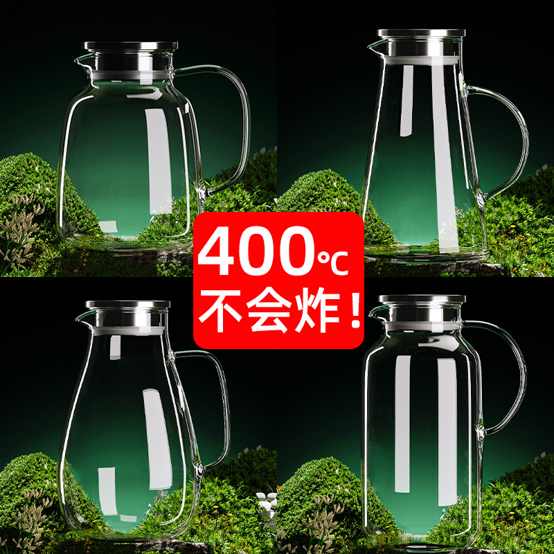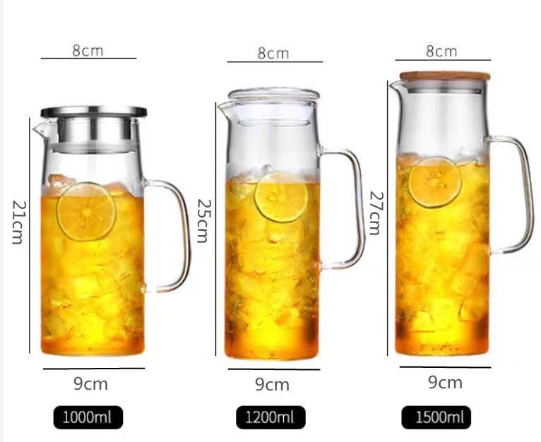 高ホウ素シリコンガラスストレートポット凉白オープン冷水ポットオフィス大容量透明ガラスジュース冷水ポット