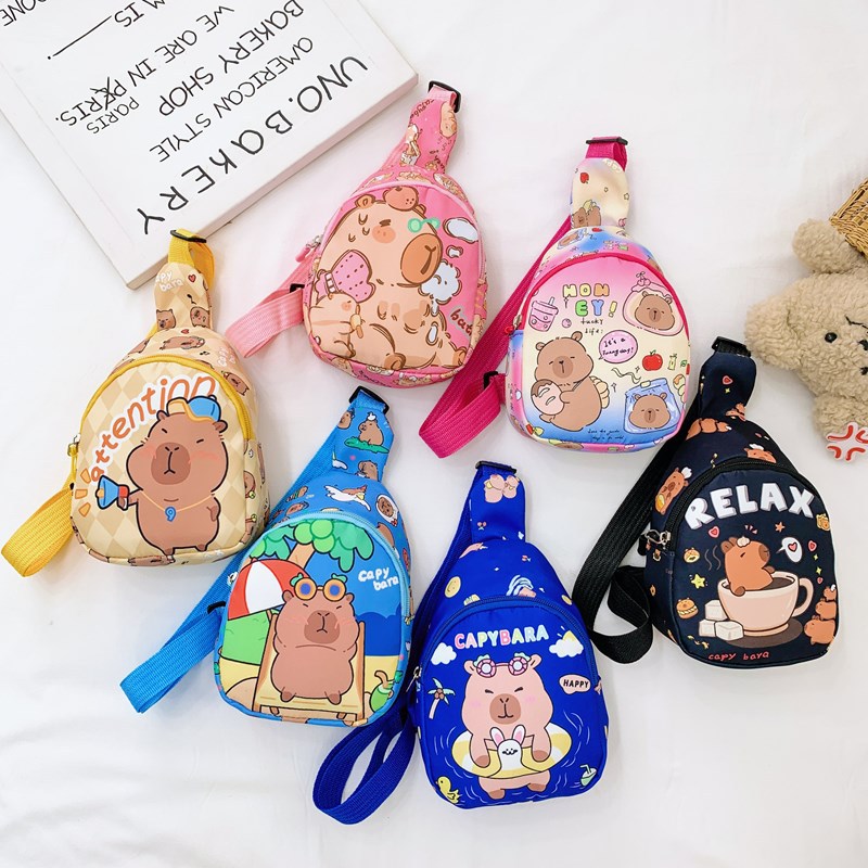 カピバラ子供用シングルショルダーバッグ漫画幼稚園の胸バッグかわいい子供の軽い小銭のキーホルダー
