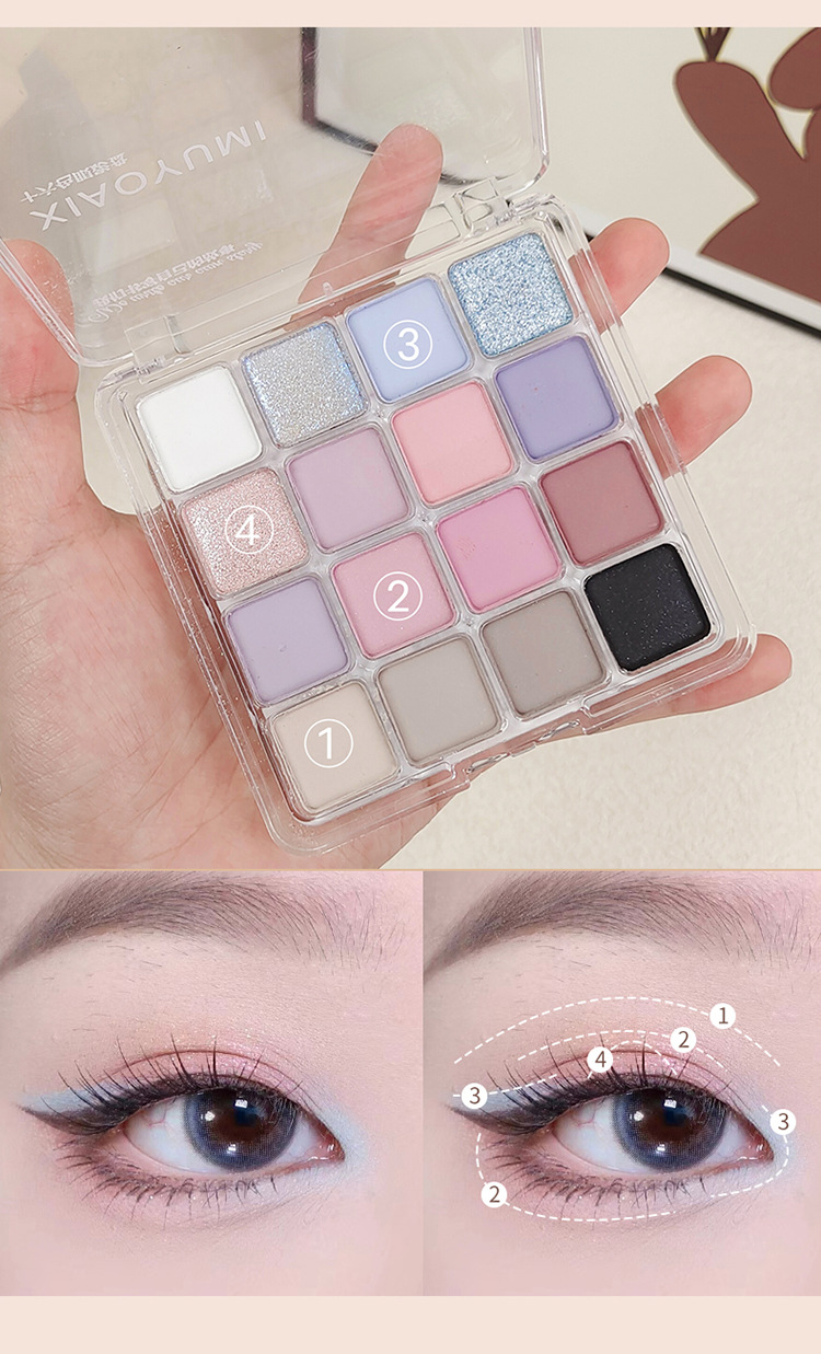 アイスブルースモーク韓系偽素顔小情緒裸化粧16色アイシャドー盤閃粉臥蚕頬紅一体修容盤