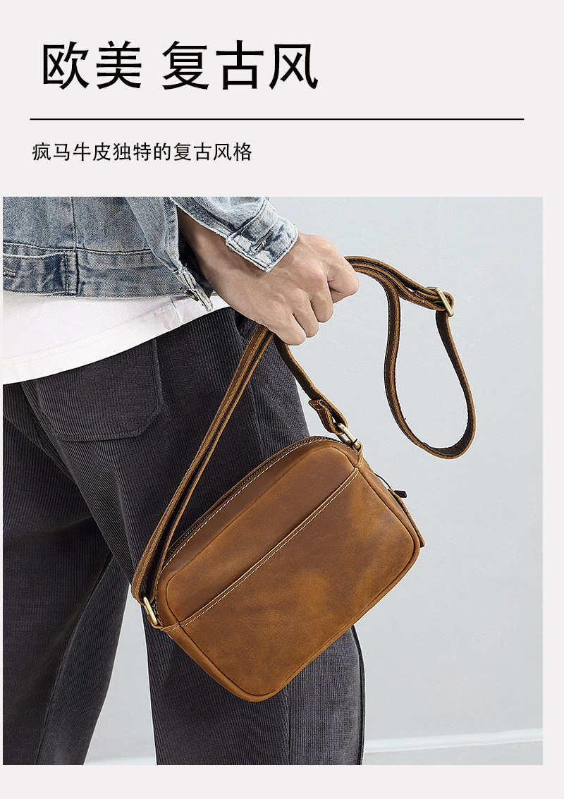 新商品オリジナル狂馬皮男性カバン本革斜めショルダーバッグ男性手作りの頭層牛革ショルダーバッグレトロ小リュックサック