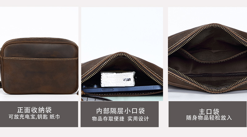 本革ウォッシュバッグ第一層牛革収納袋レトロメンズクラッチバッグ耐摩耗性牛革バッグクロスボーダー供給