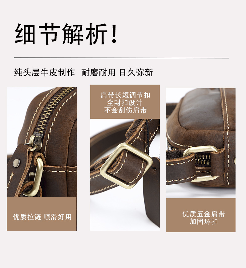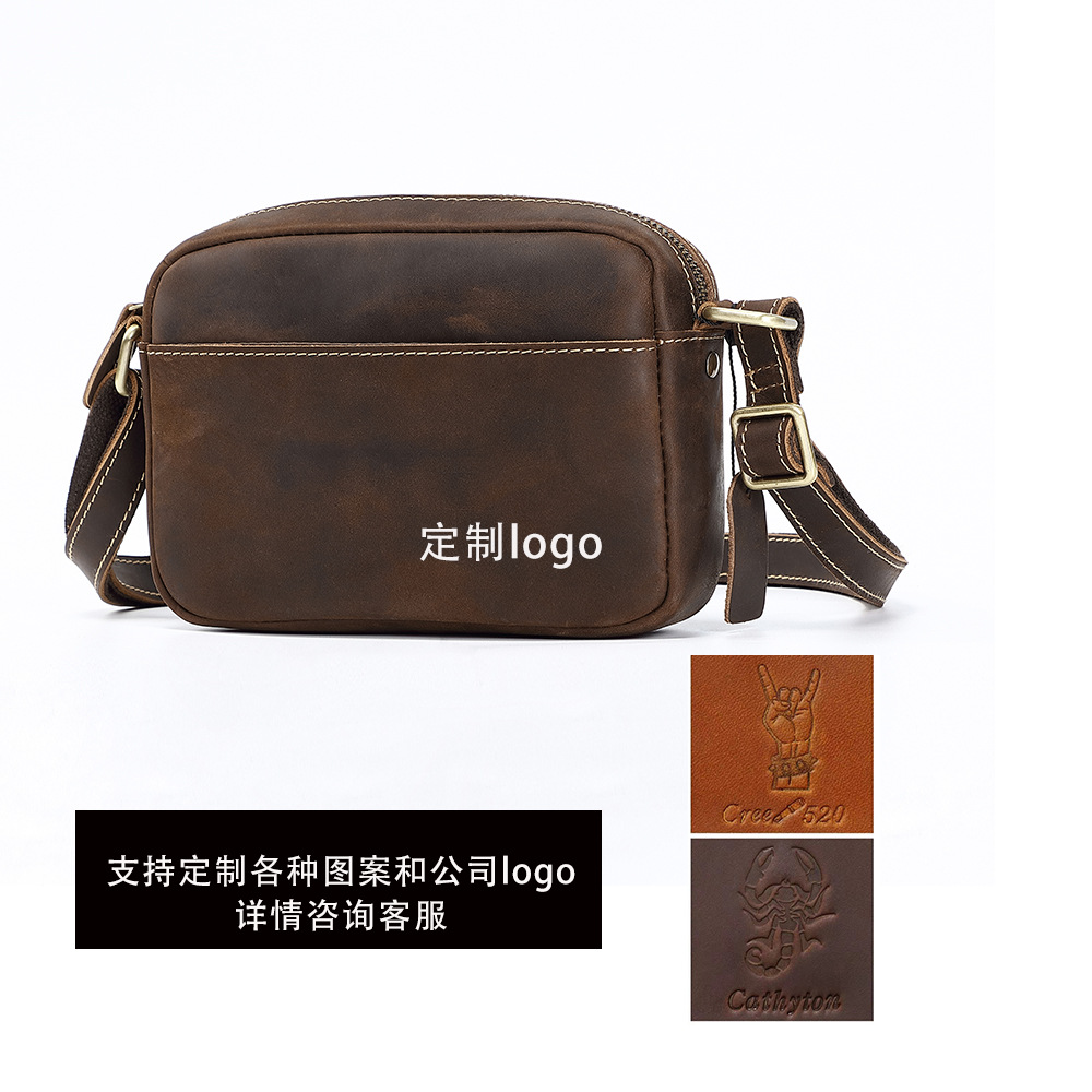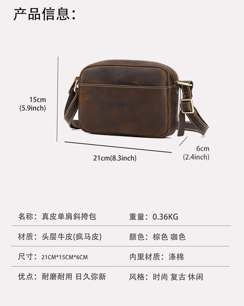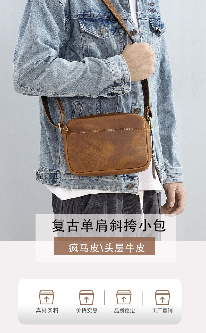 トップ層牛革シングルショルダーバッグ真皮高級感斜め掛け男性革バッグ狂馬皮個性郵便配達リュックサッククロスボーダー商品ソース