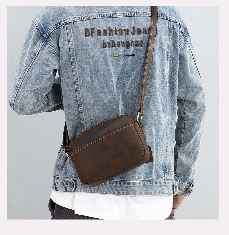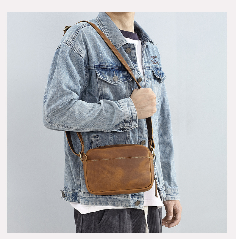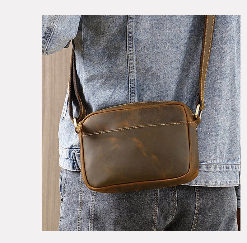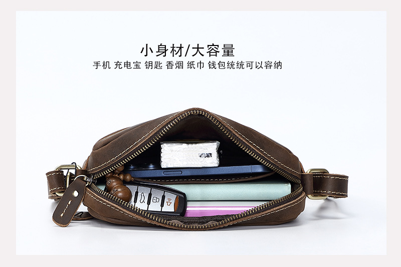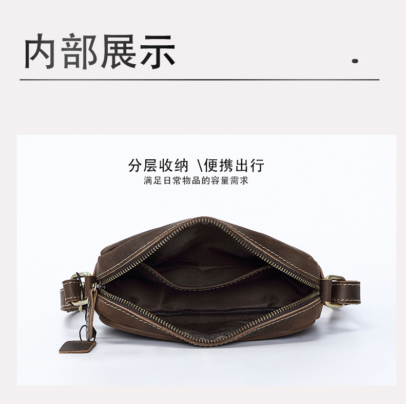 トップ層牛革シングルショルダーバッグ真皮高級感斜め掛け男性革バッグ狂馬皮個性郵便配達リュックサッククロスボーダー商品ソース