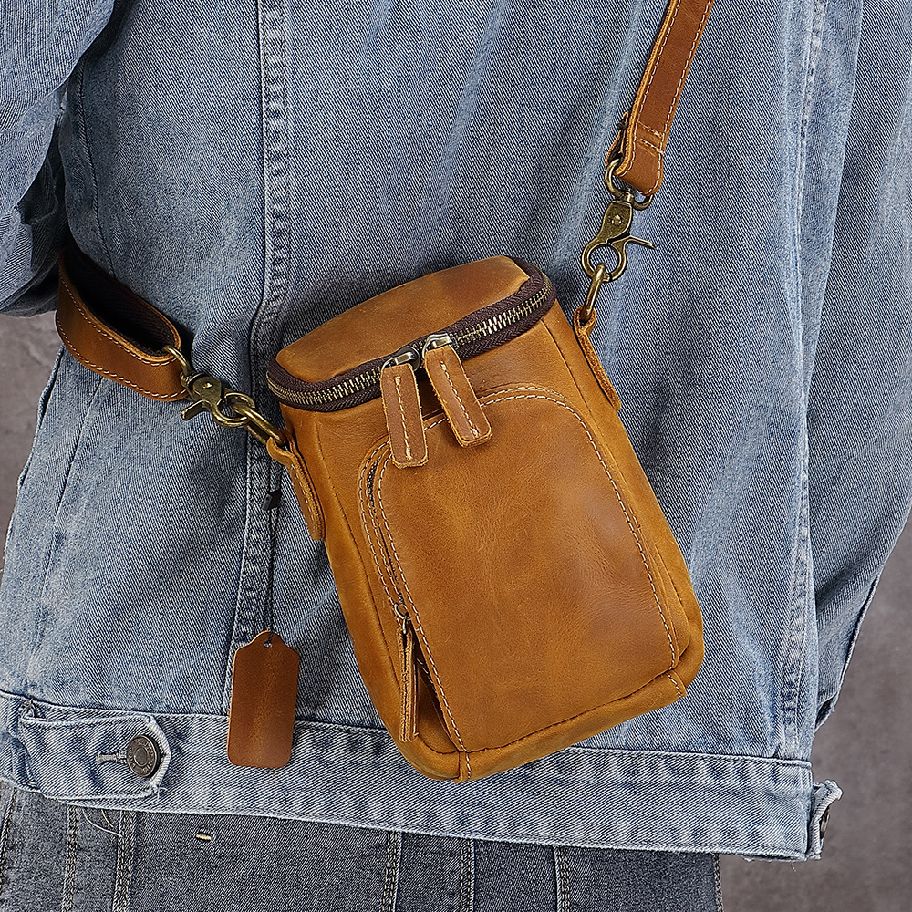 レトロ本革斜めショルダーバッグミニ男性リュックサックのトップ層牛革携帯電話バッグベルトを着て腰にカジュアルバッグを掛けます。