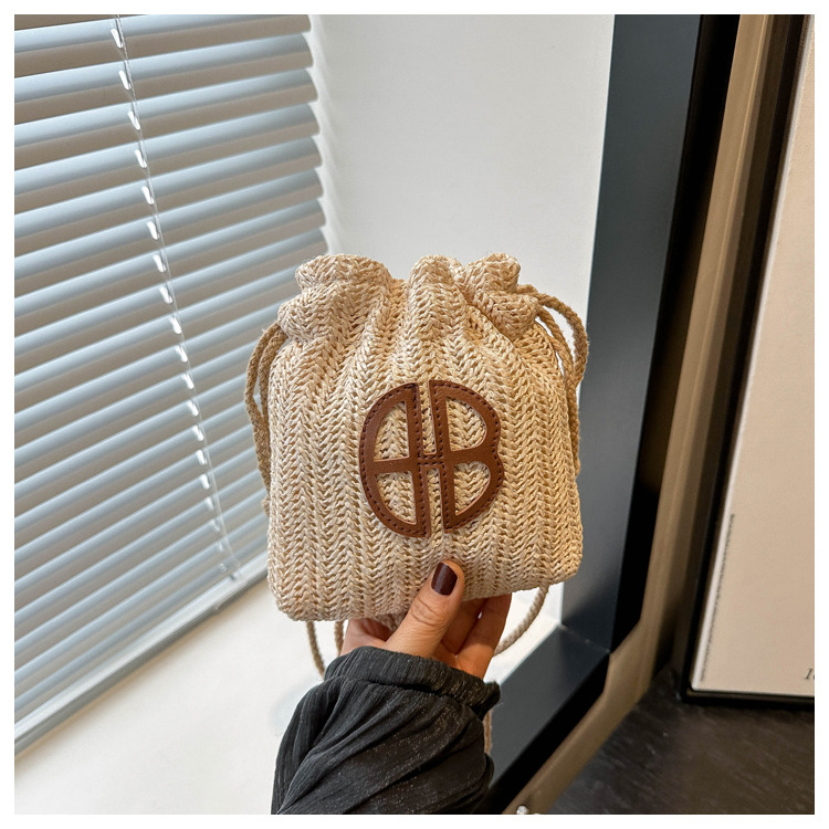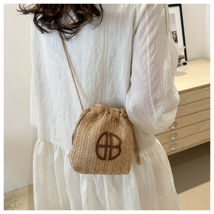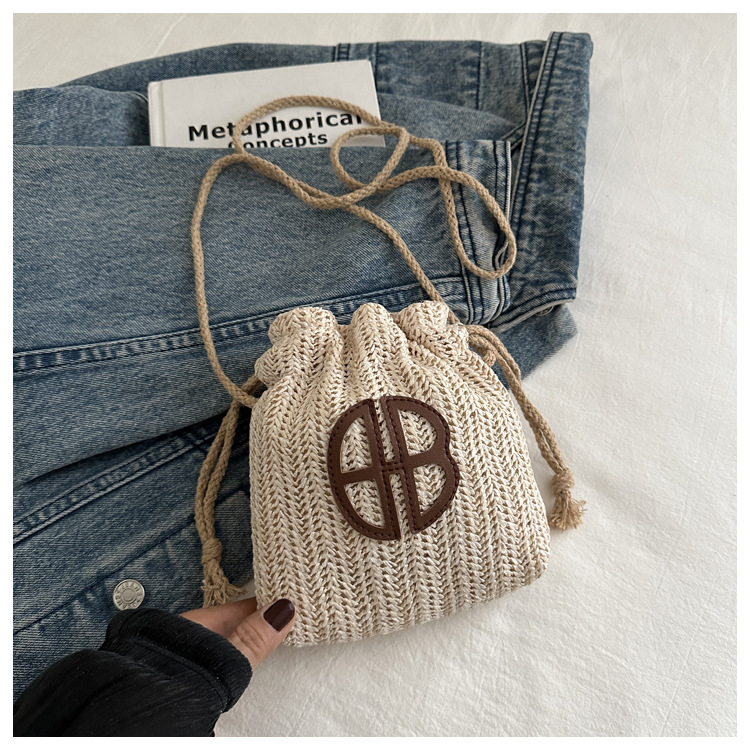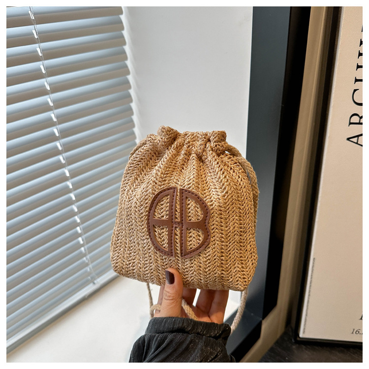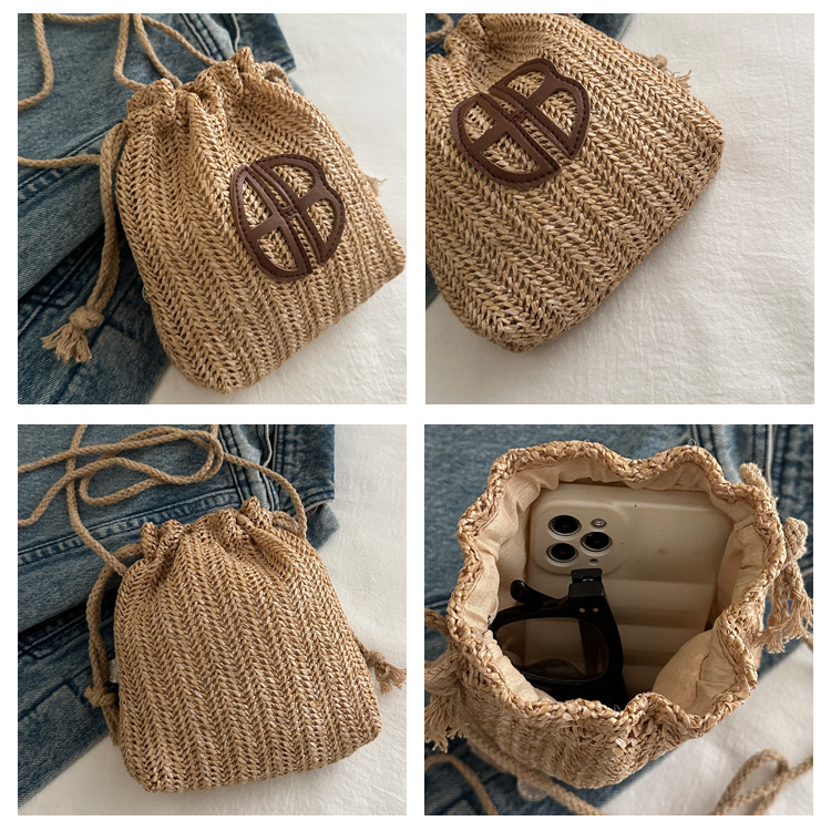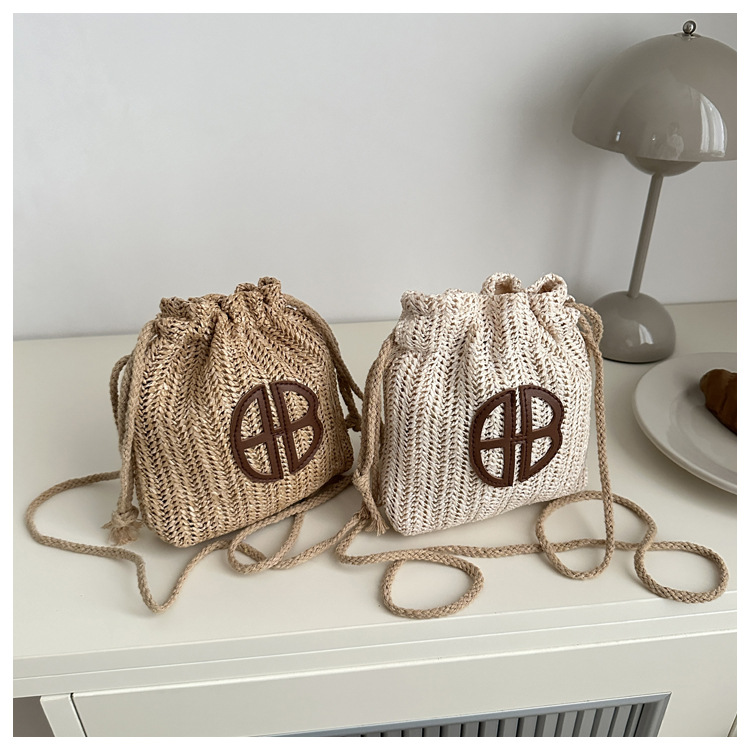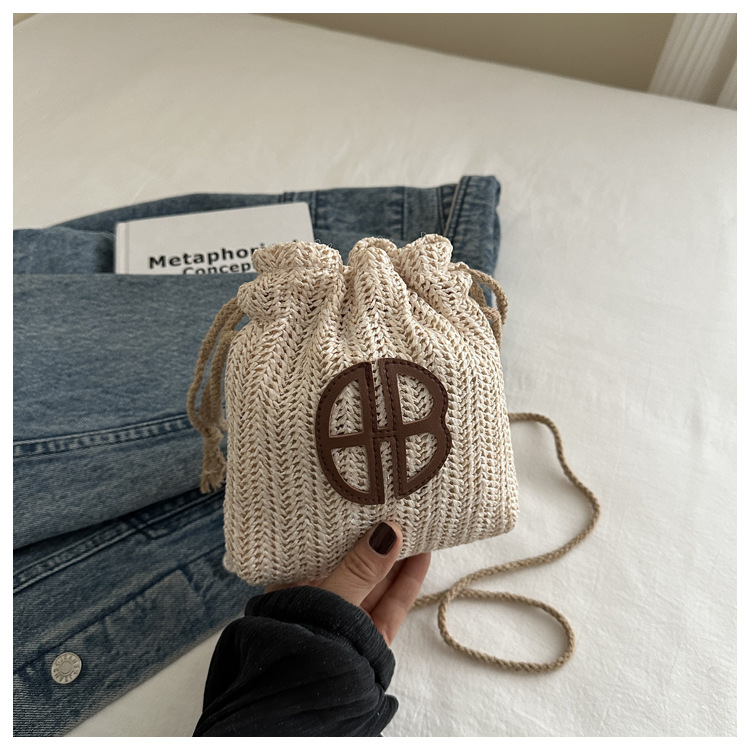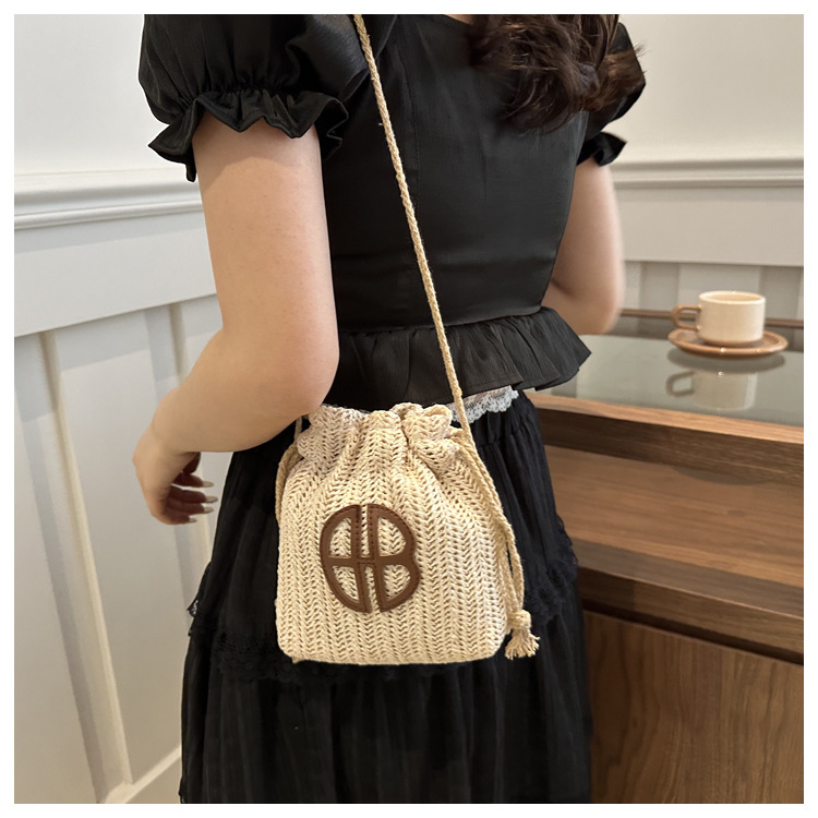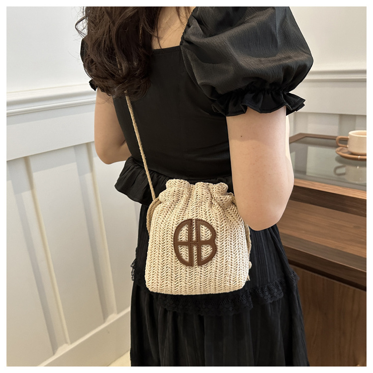 編み包みの女性バッグの新型2024夏草編かわいいアンドロメダ小清新バケツバッグシングル肩斜め掛け携帯バッグ