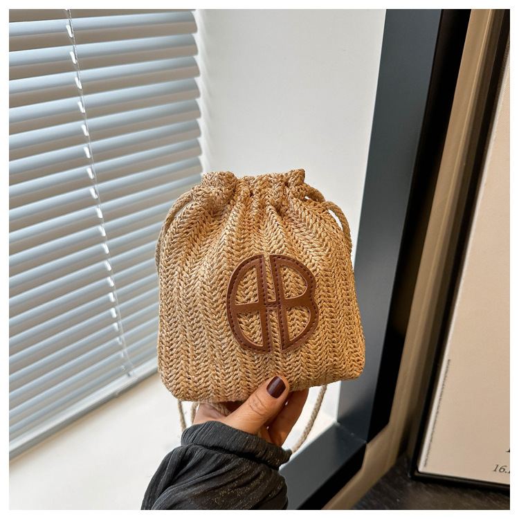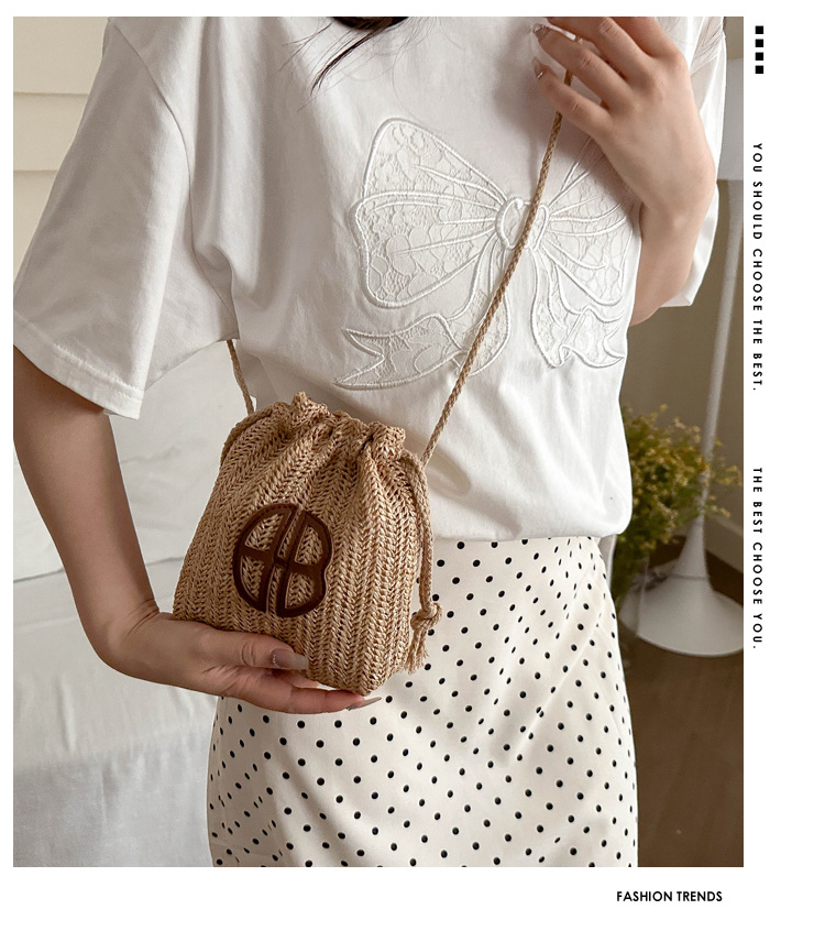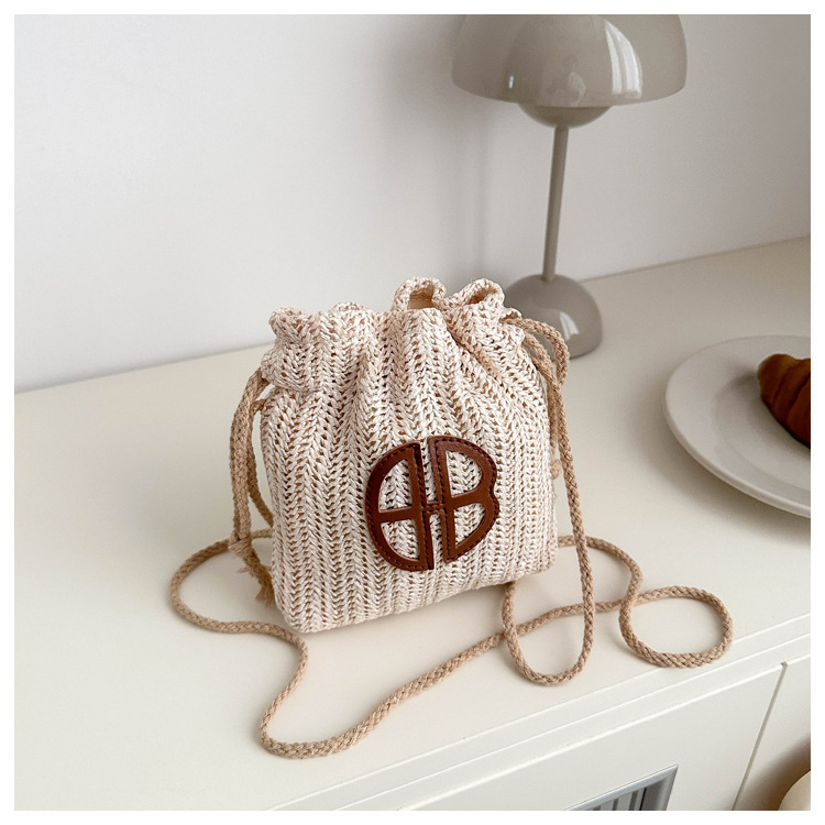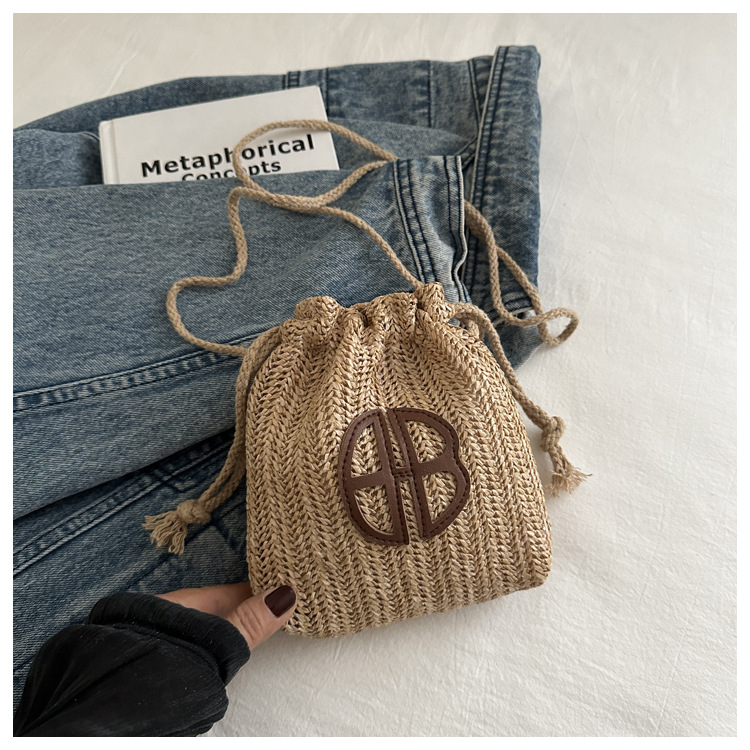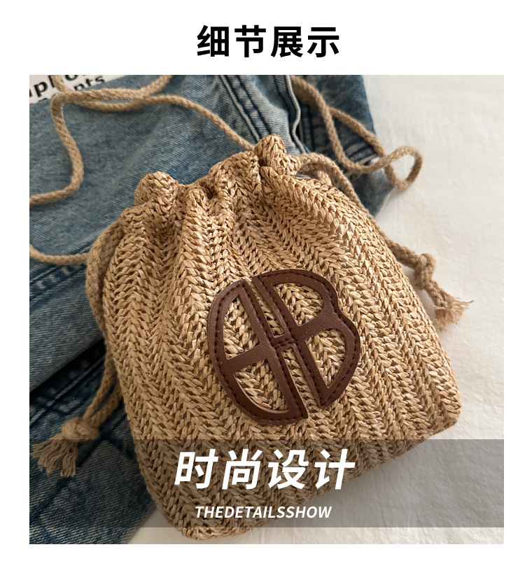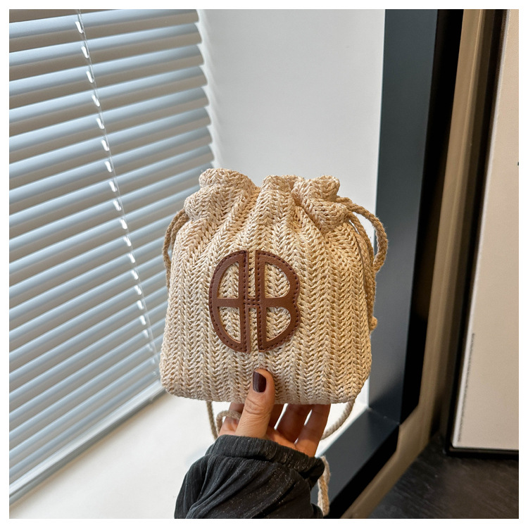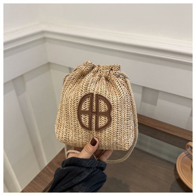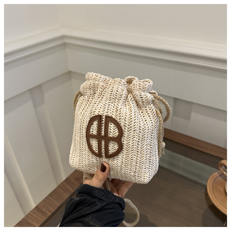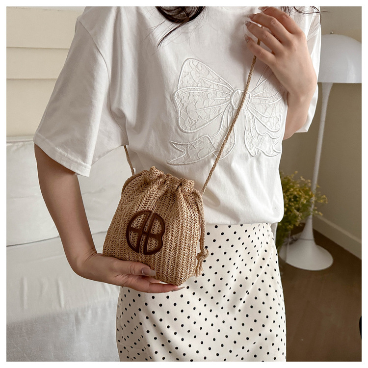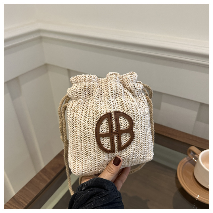 編み包みの女性バッグの新型2024夏草編かわいいアンドロメダ小清新バケツバッグシングル肩斜め掛け携帯バッグ