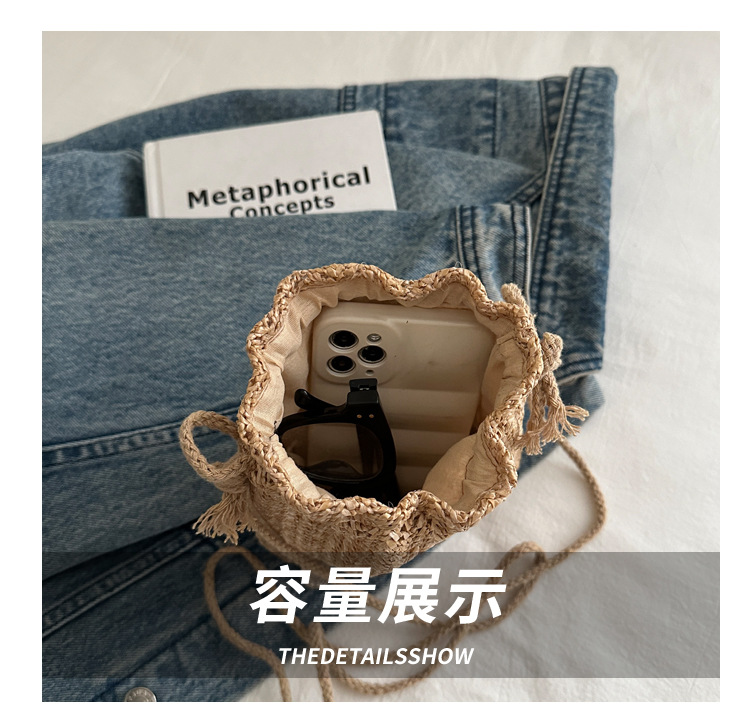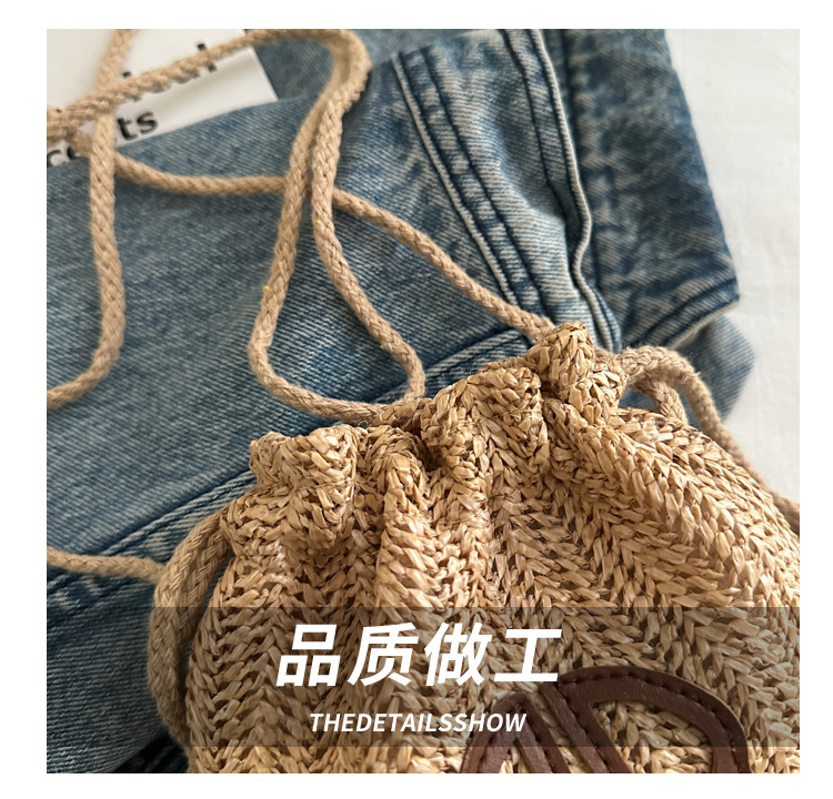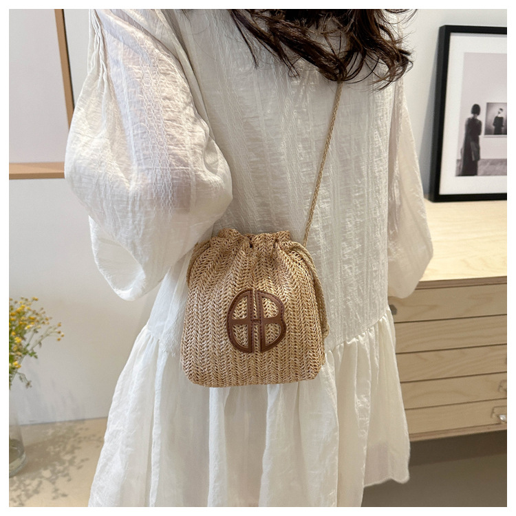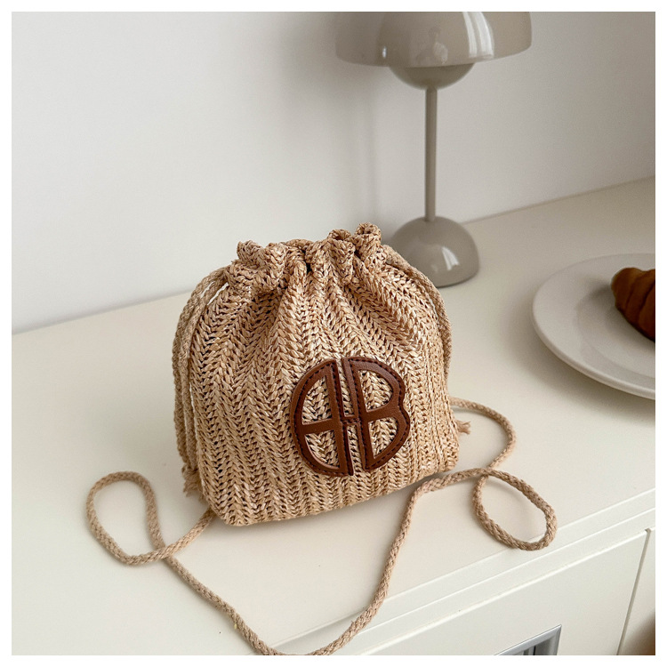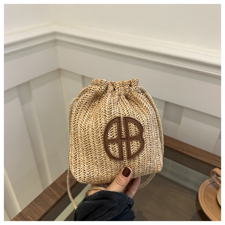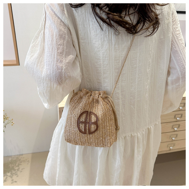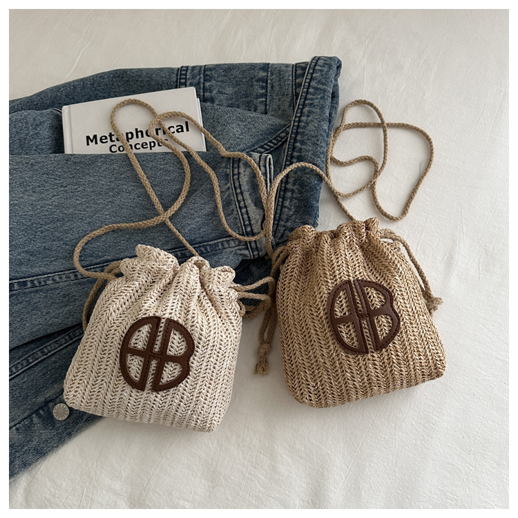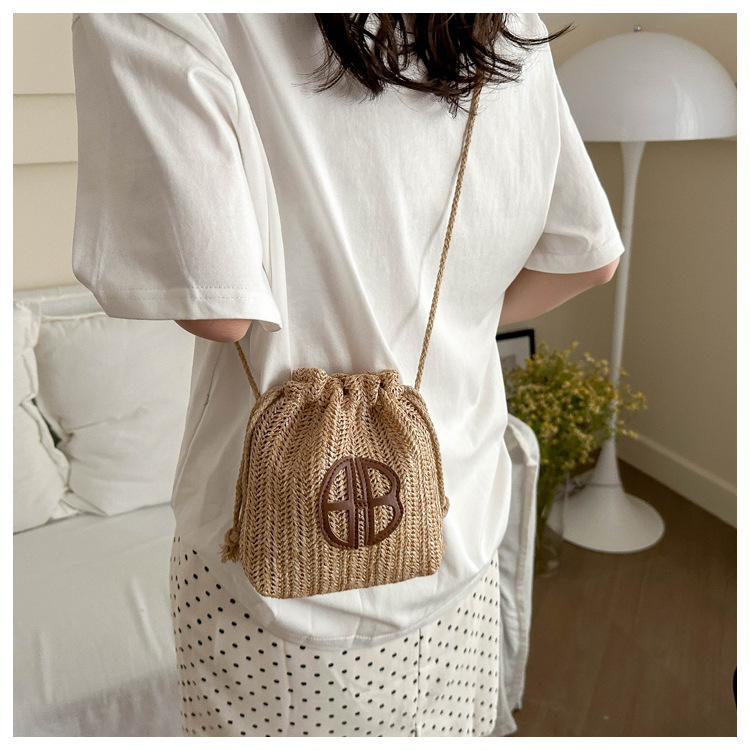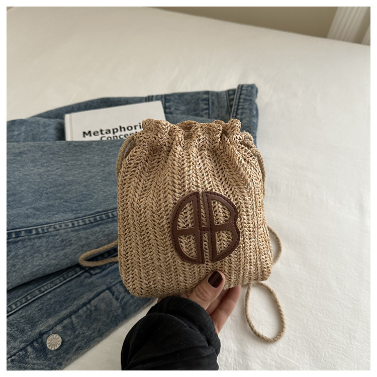 編み包みの女性バッグの新型2024夏草編かわいいアンドロメダ小清新バケツバッグシングル肩斜め掛け携帯バッグ