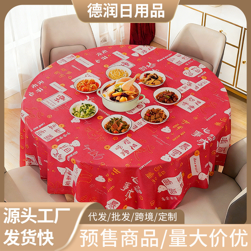 新年红色桌布一次性加厚喜庆结婚台布塑料薄膜餐布桌垫圆桌长方形