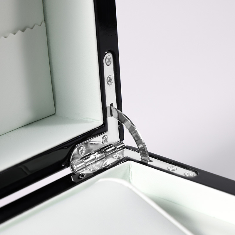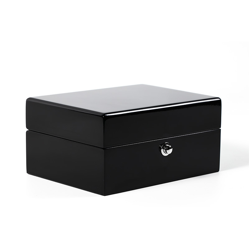 大量販売 ジュエリーボックス 黒色光沢塗装 木製フリップカバー 腕時計ボックス 指輪ボックス ロゴ印刷 ギフトボックス