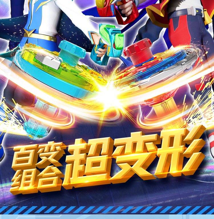 三宝百変戦陀1世代の子供のジャイロのおもちゃは超変戦陀5男の子と対戦します。