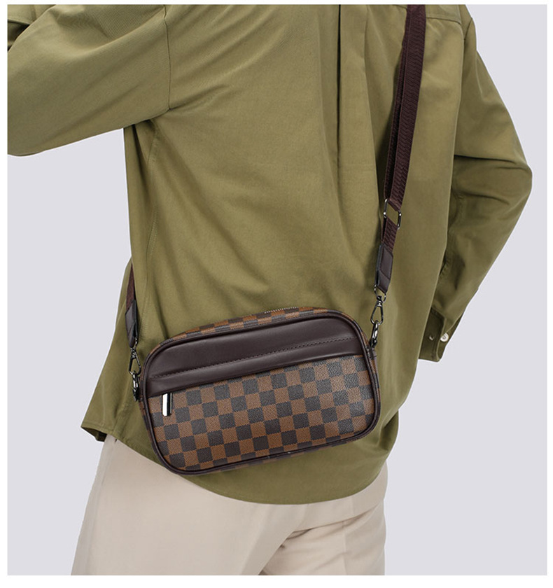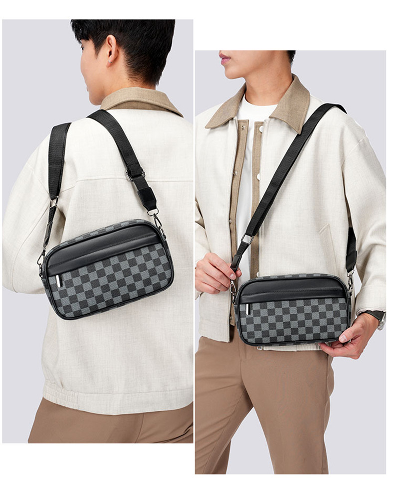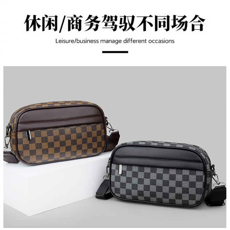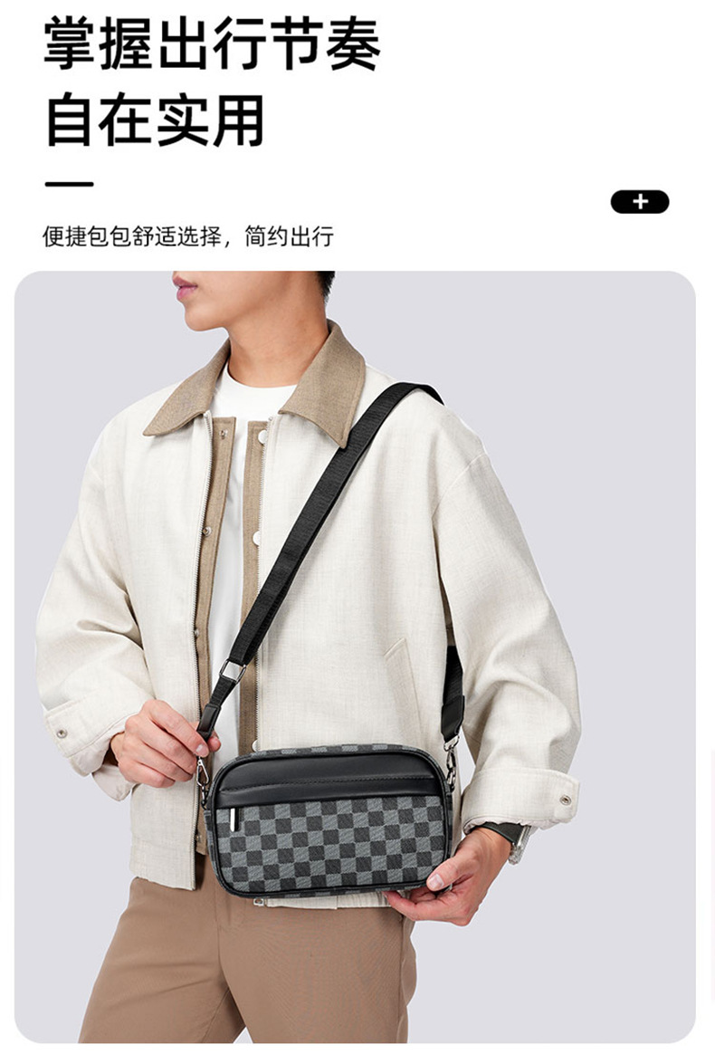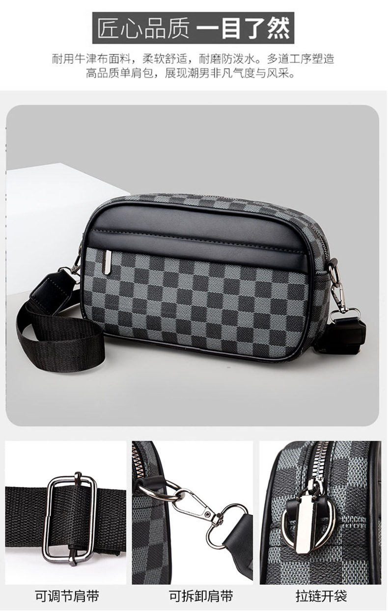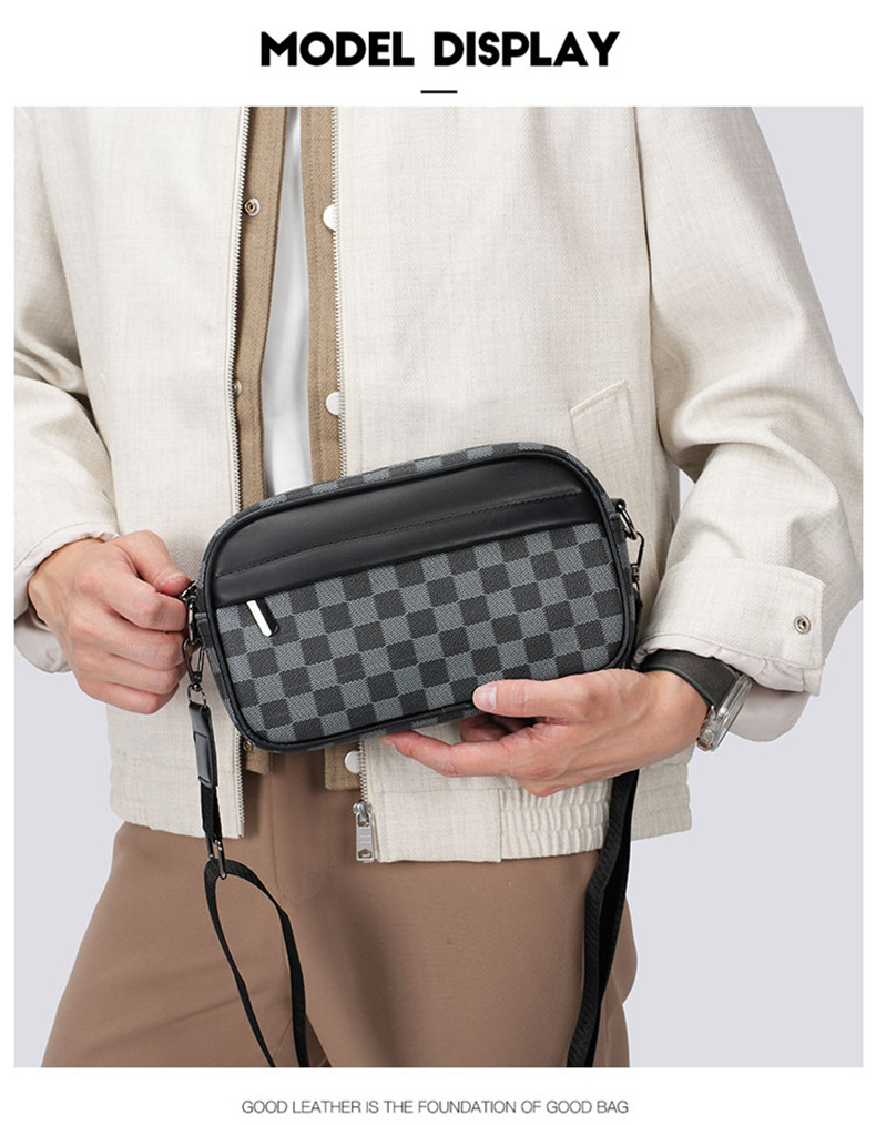男士斜挎包新款手拿包商务百搭休闲格子休闲潮包跨境户外单肩男包