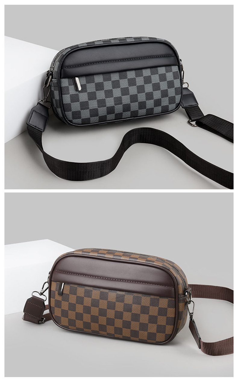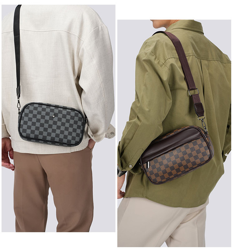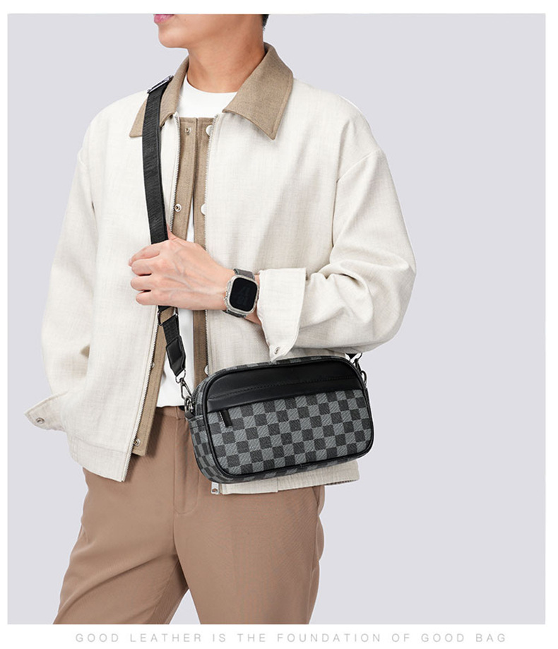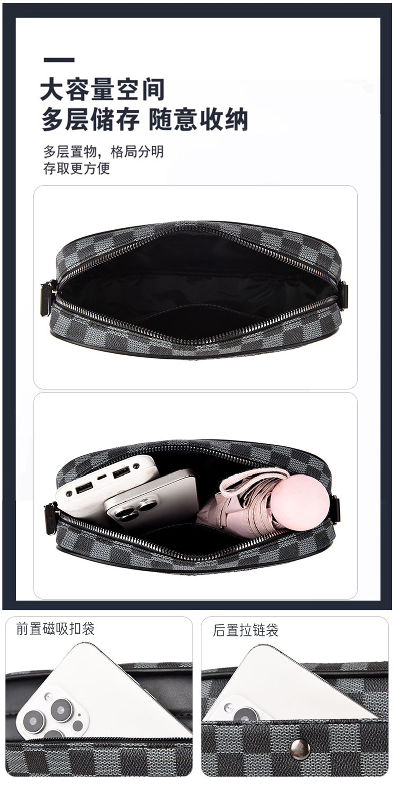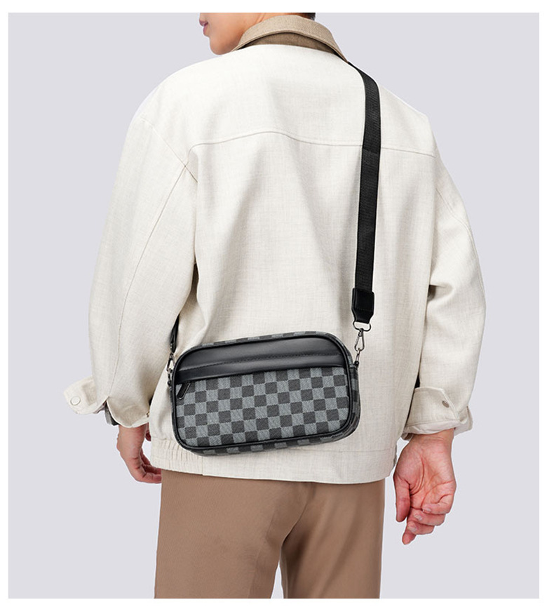男士斜挎包新款手拿包商务百搭休闲格子休闲潮包跨境户外单肩男包