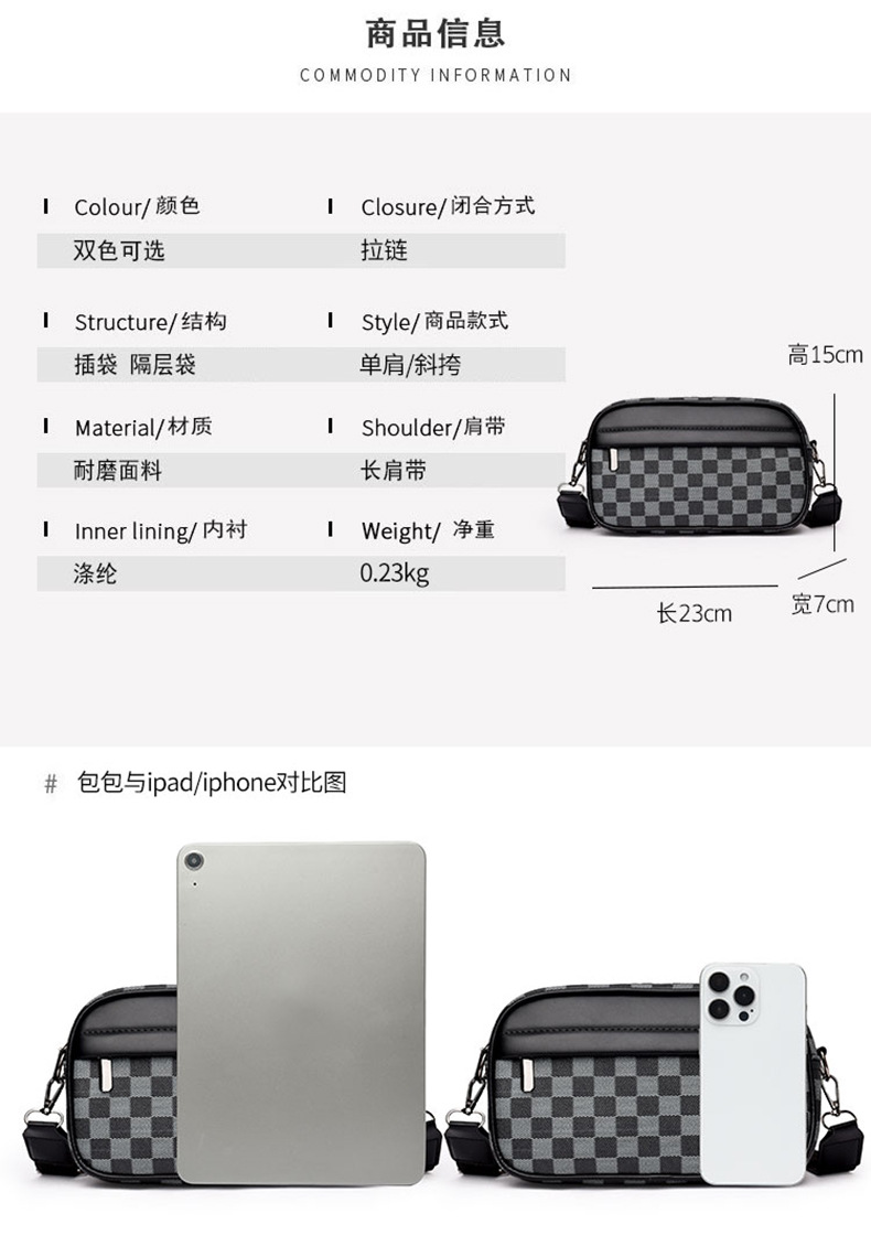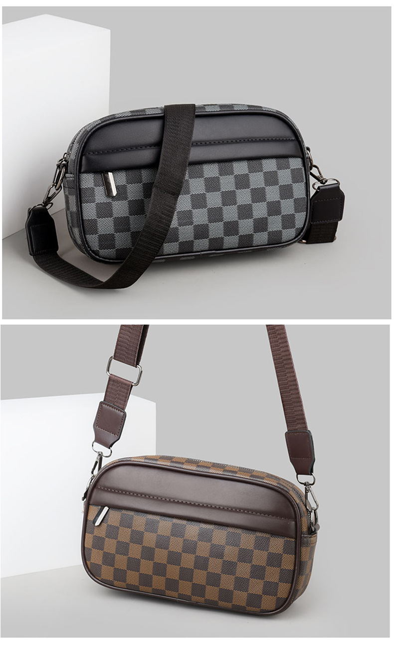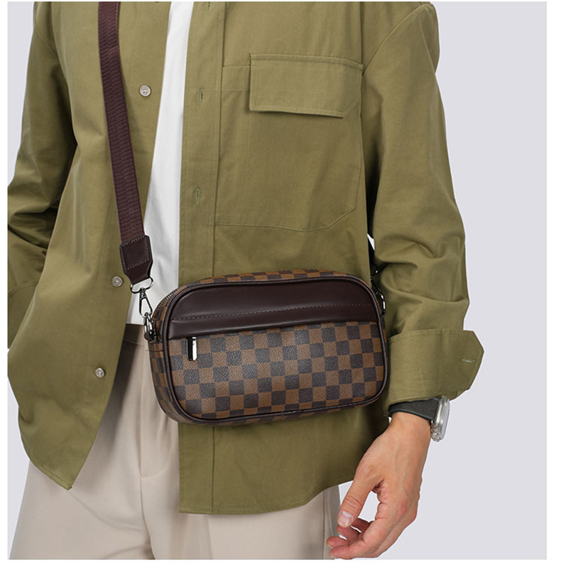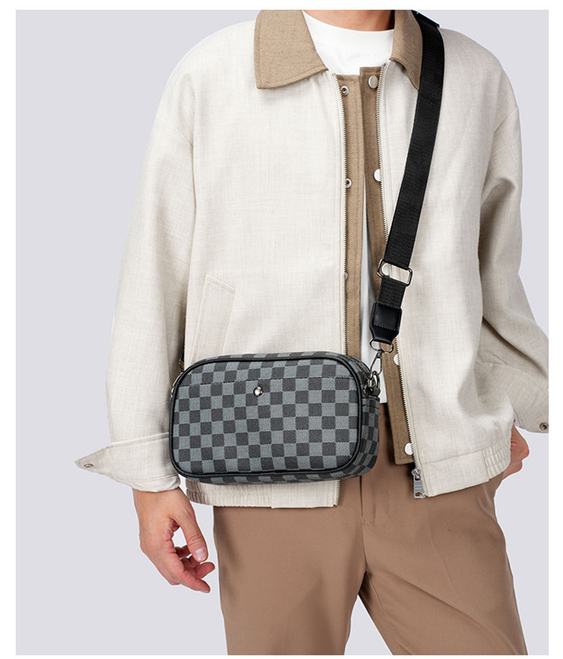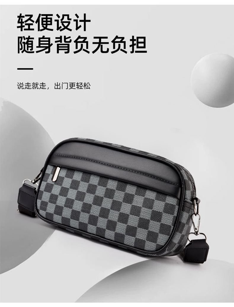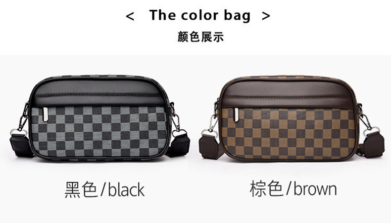 男士斜挎包新款手拿包商务百搭休闲格子休闲潮包跨境户外单肩男包
