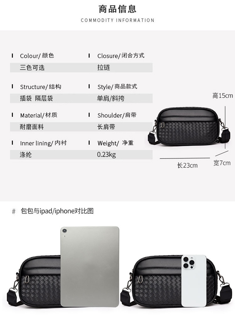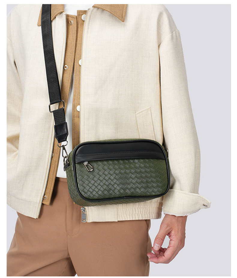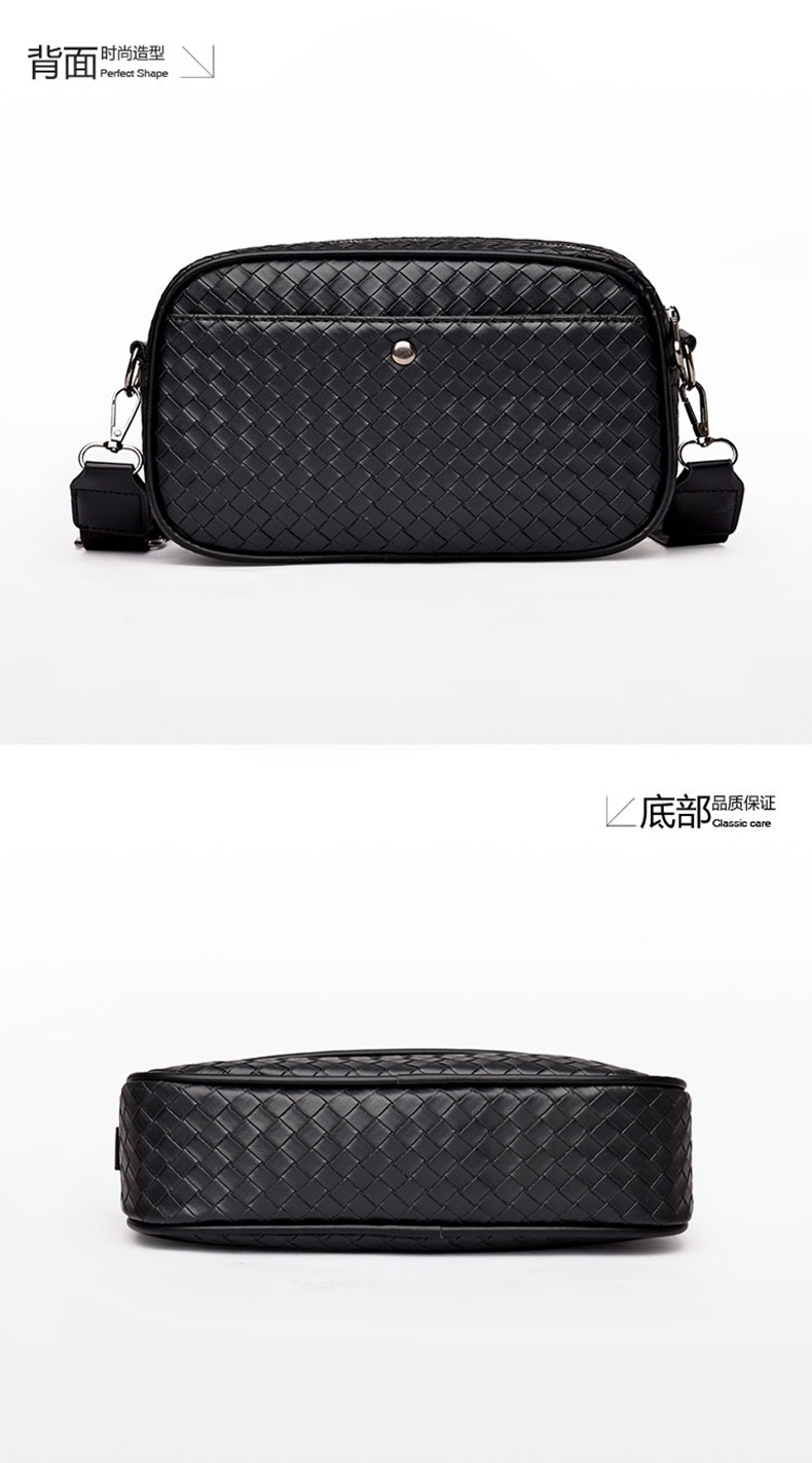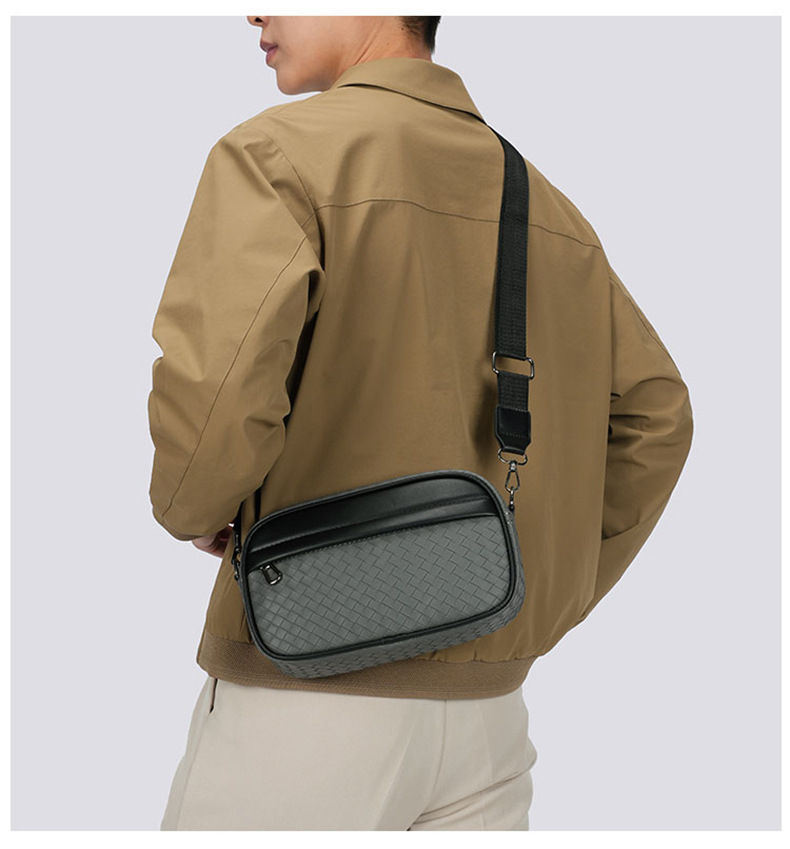 跨境新款男士编织单肩包斜挎包PU皮运动包多功能收纳包便携小背包